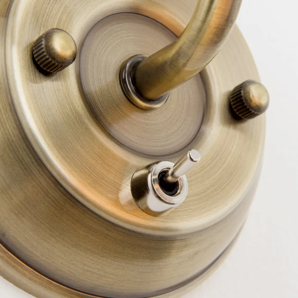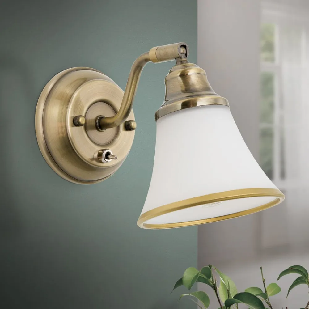 Væglampen TILDA har et klassisk design med nostalgiske detaljer i antikt messing.