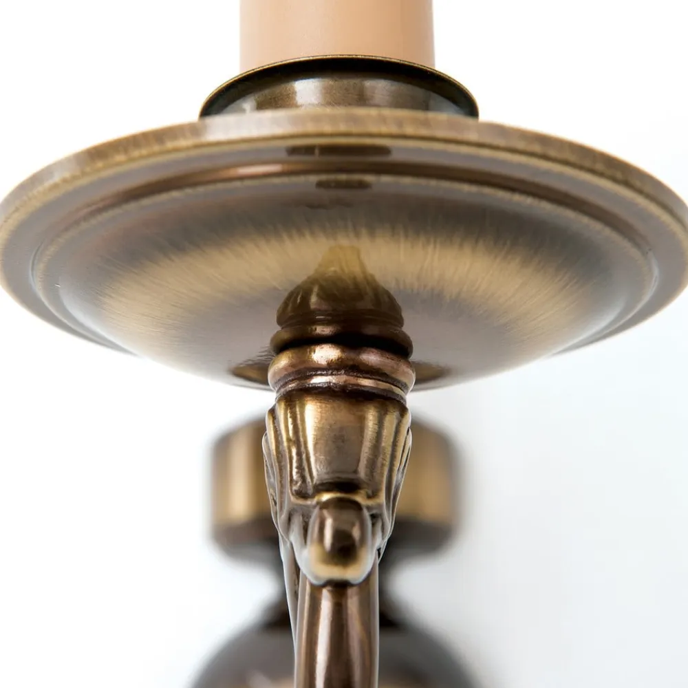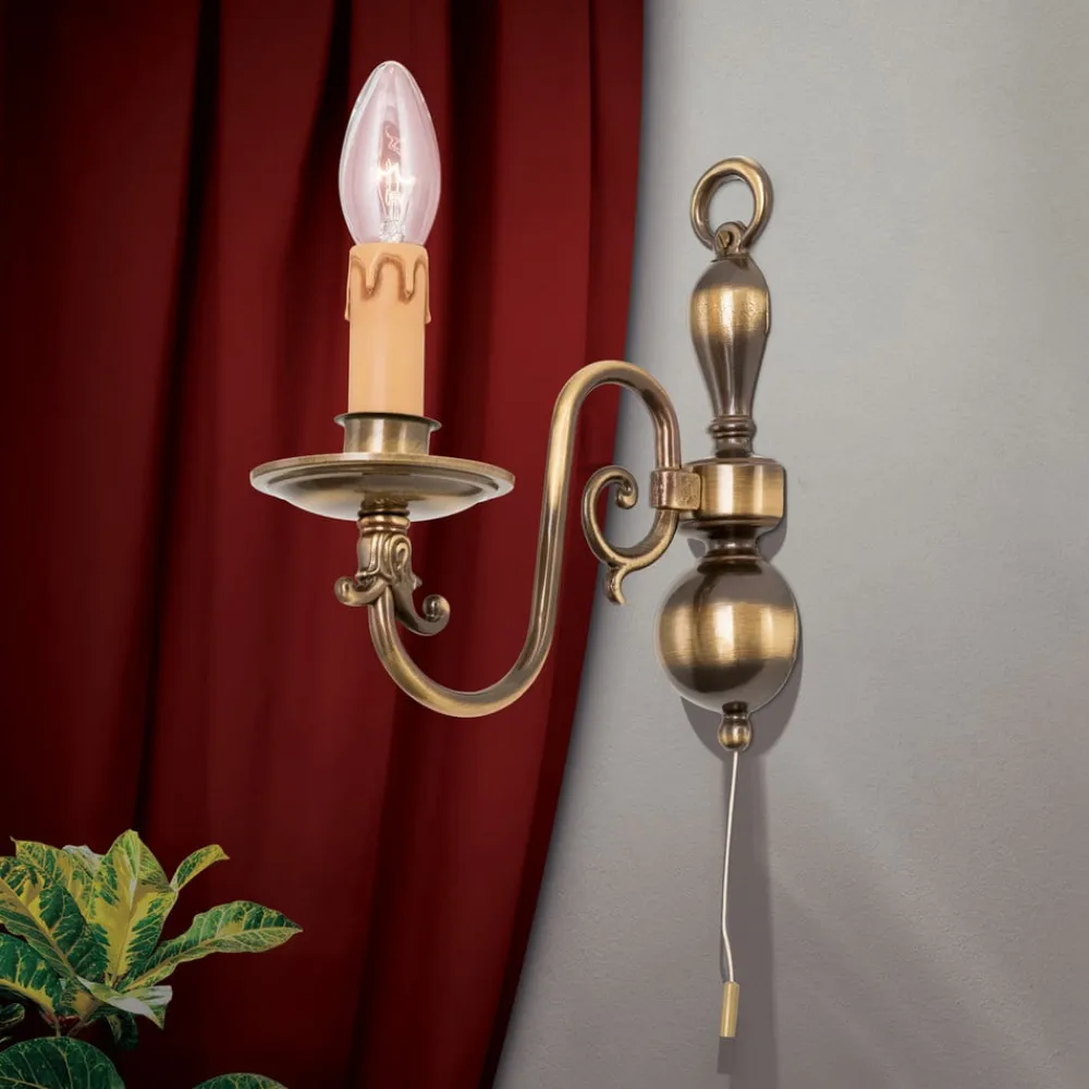 Denne stilrigtige flamske væglampe imponerer med en eksklusiv udforming i messing og støbte komponenter. Den håndbehandlede overflade i antik messing giver lampen et egenartet touch. Væglampen er et naturligt blikfang i rummet.