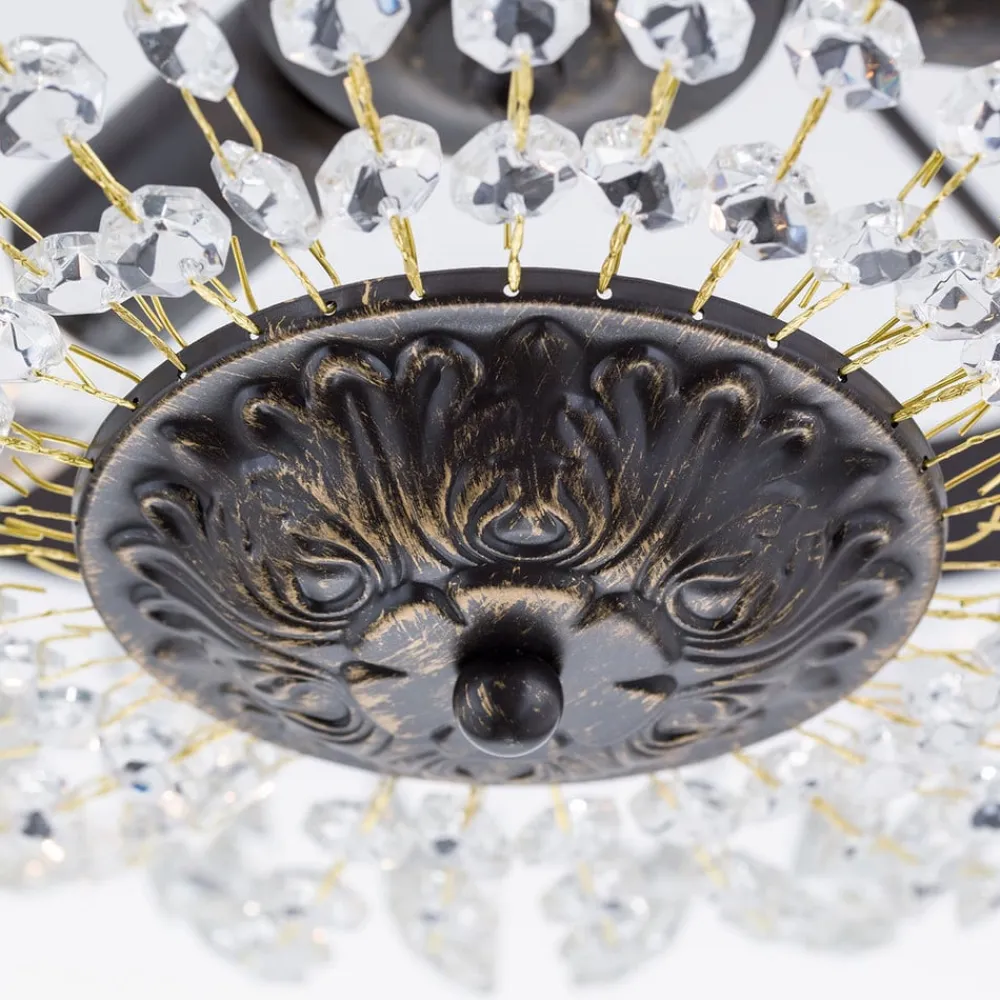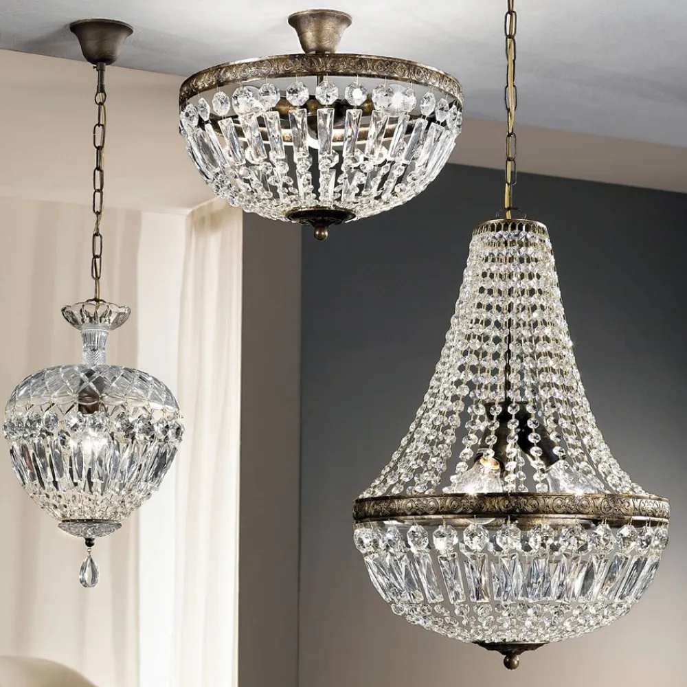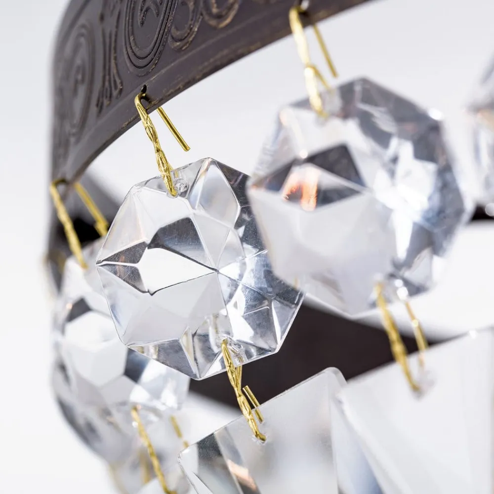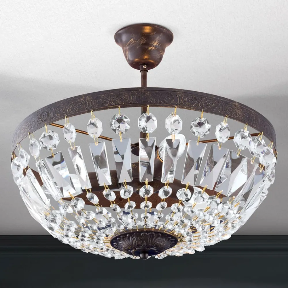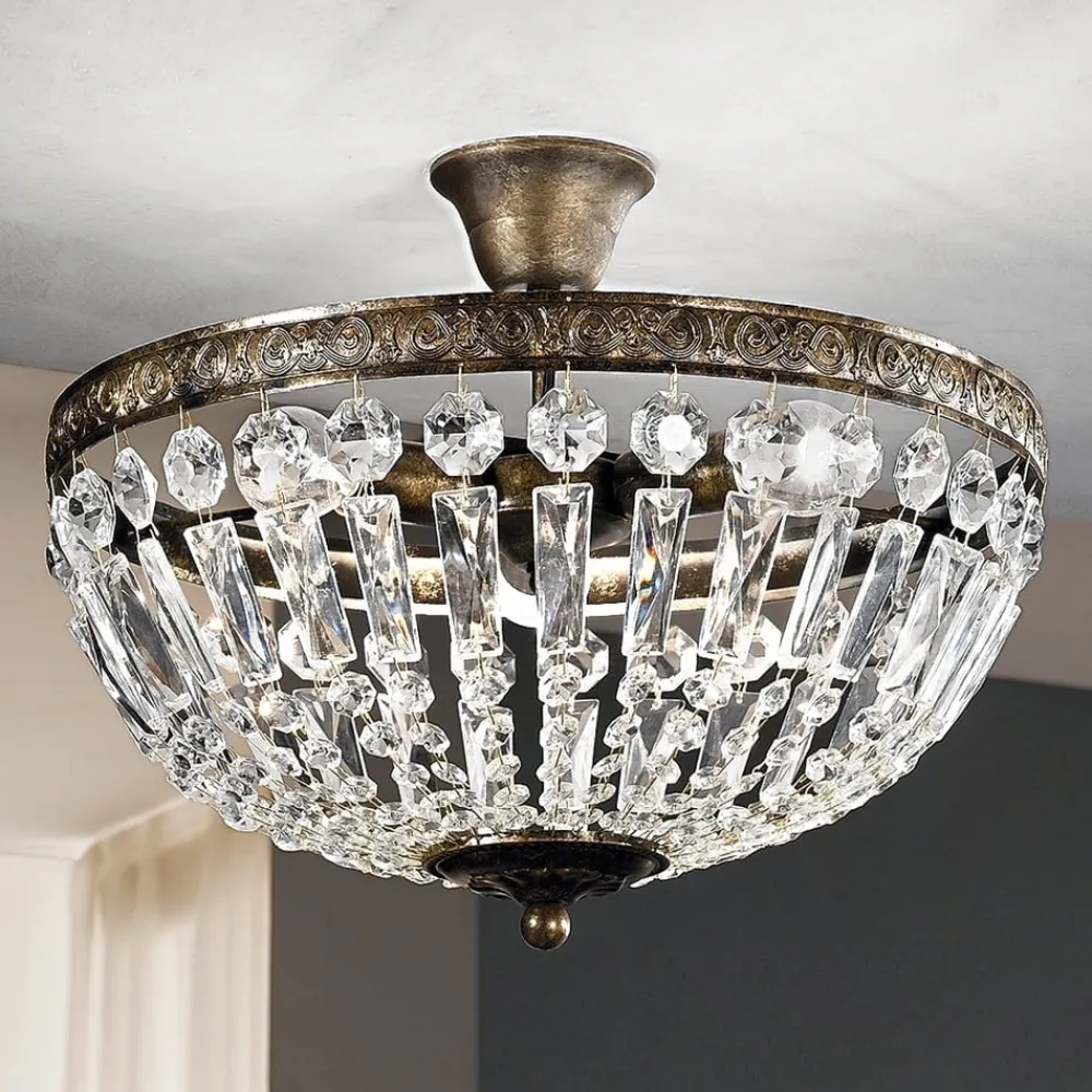 Fortryllende loftlampe i krystal-look Arila Denne loftlampe, som er prydet med utallige glaskrystaller i forskellige former, vil helt sikkert fange øjet og imponere med sit storslåede udseende og bedragerisk ægte antikke finish. Glaskrystallerne reflekterer det udsendte lys og skaber funklende øjeblikke. Lampen, som er helt ekstraordinær, kan på vidunderlig vis kombineres med antikke, mørke træmøbler, for eksempel.