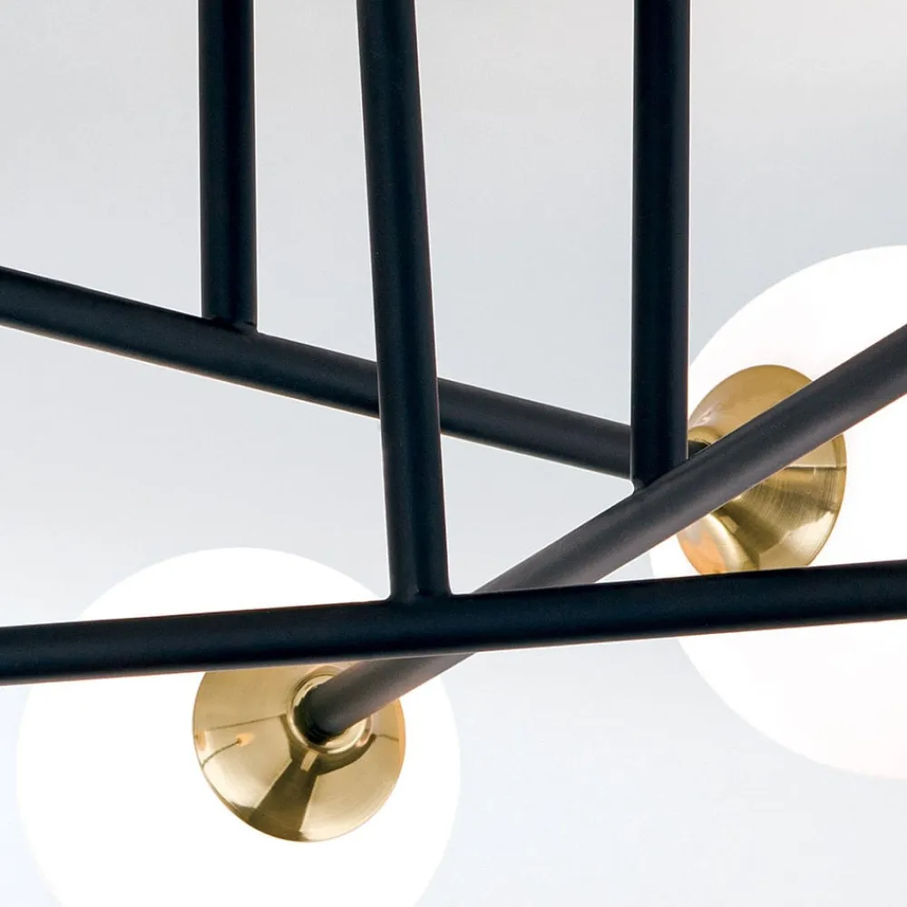 Snehvid loftslampe med filigran stang og seks glaskugler