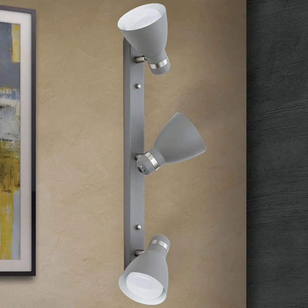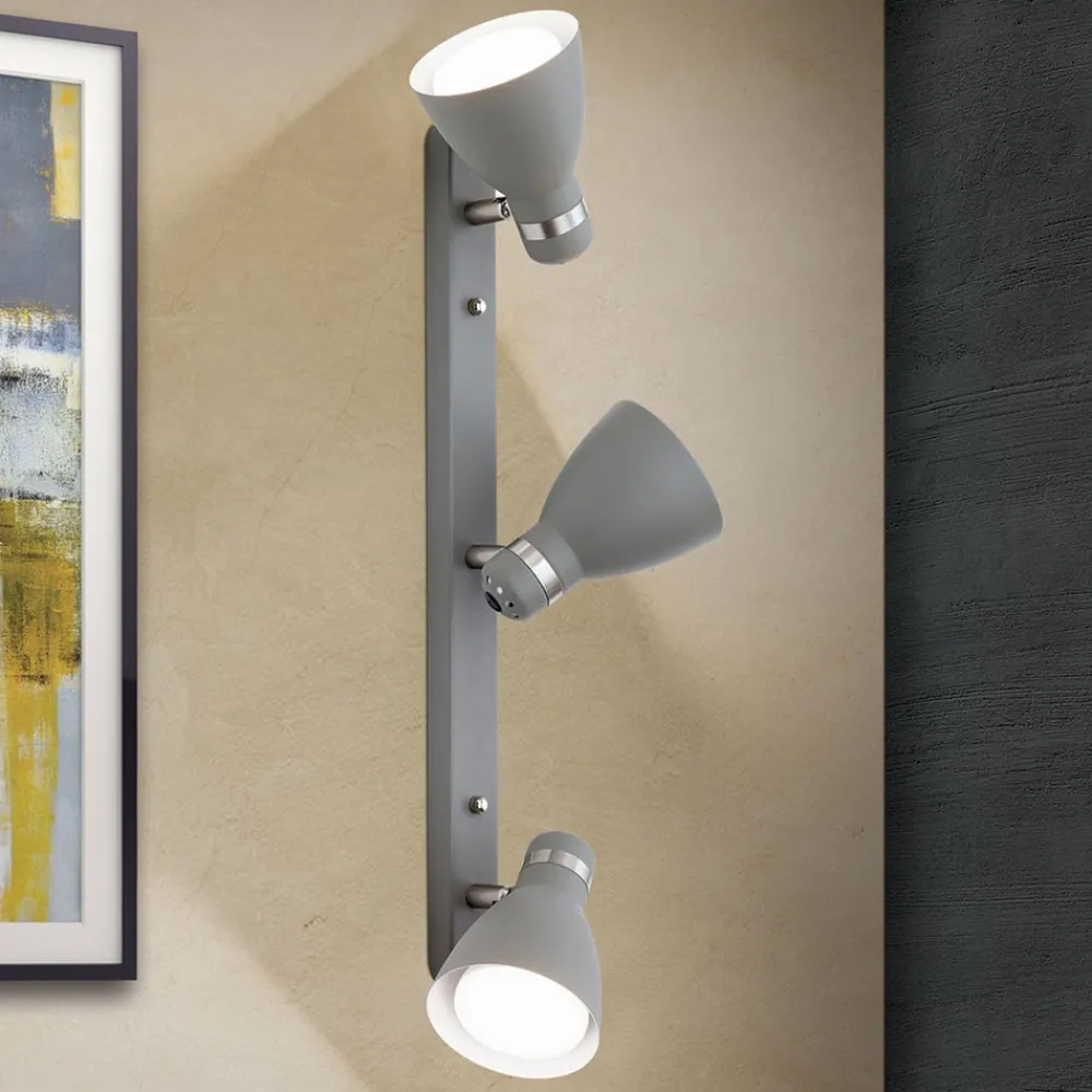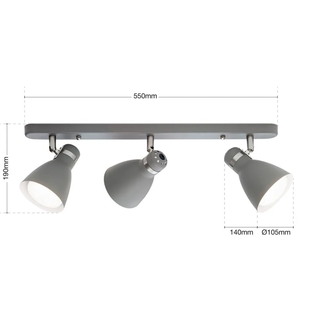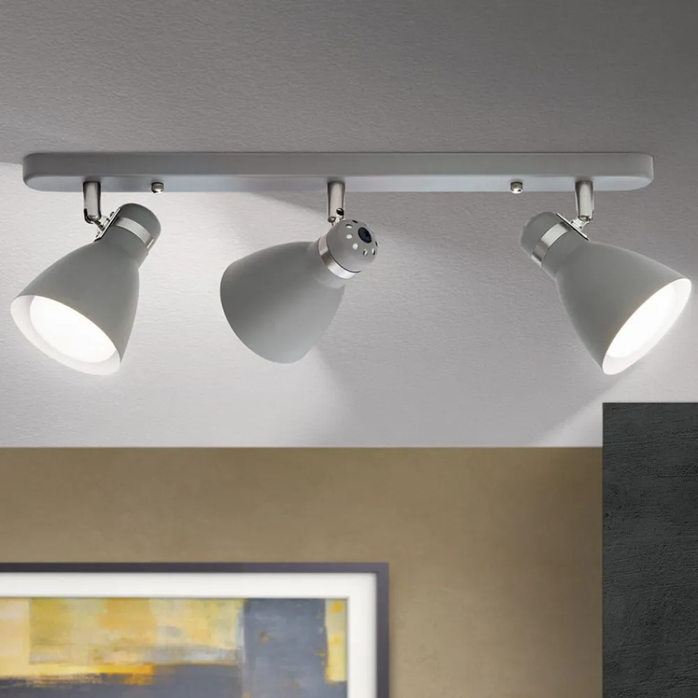 Dette loftspot med tre lamper er den ideelle belysningsløsning til stuer og korridorer. De tre spotlights, der er placeret med lige store intervaller på baldakinen, kan drejes individuelt, så lysretningen kan varieres individuelt. Dette skaber en bred belysning af rummet, som ikke udelukker mørke hjørner. Rent visuelt passer School loftspots til mange aktuelle boligtrends; den monokrome finish blødes op af kromfarvede dekorative elementer i sokkelområdet på hver spot. Lysets lysstyrke kan reguleres via en ekstern lysdæmper.