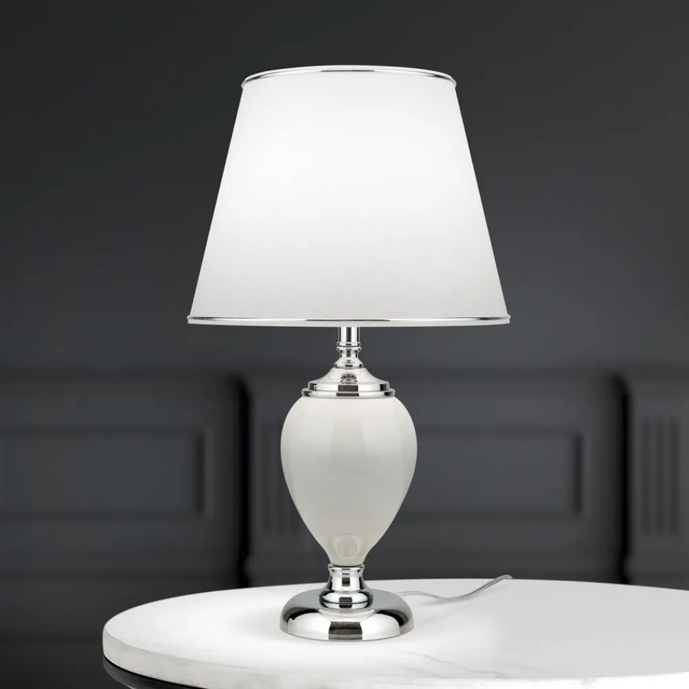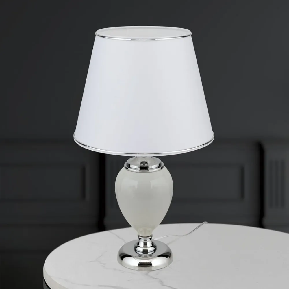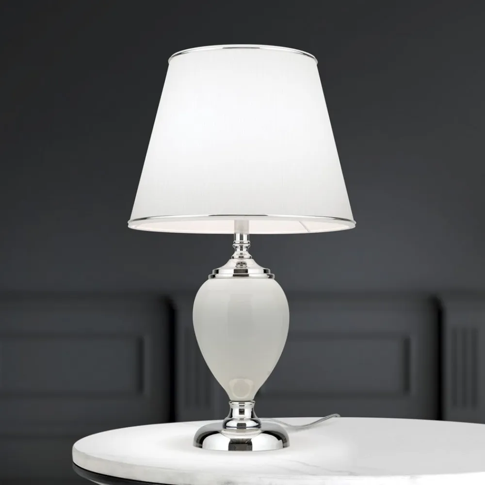 Ovum bordlampe, hvid/krom, højde 48 cm, keramik/chintz