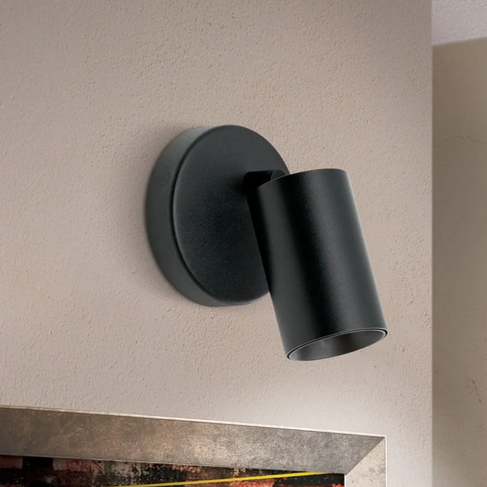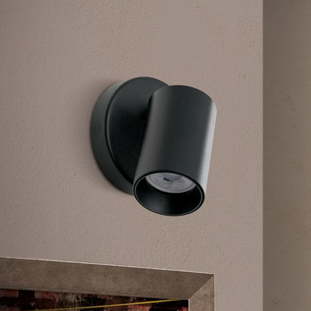 Denne lille, diskrete Sean-enkeltplet med en rund holder kan ideelt bruges til f.eks. At belyse malerier eller fremhæve planter. Det kan fastgøres enten til væggen eller til loftet. Hele overfladen på stedet, lavet af aluminium, er belagt med en mat sort finish, hvilket gør det til et fleksibelt lyselement, der let kan integreres i forskellige stilarter. Spotlightet kan drejes og drejes, hvilket betyder, at det kan justeres efter behov. Der skal bruges en GU10-lampe. (se tilbehør)
