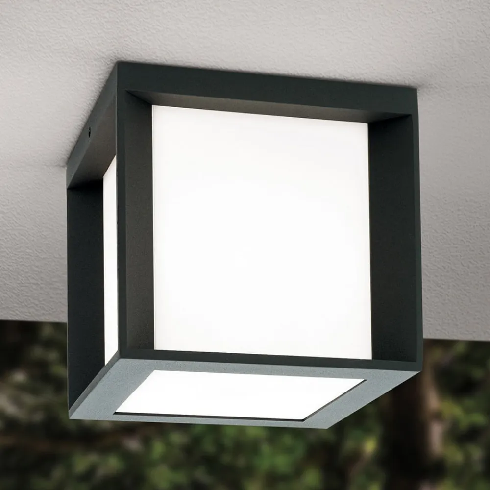 Terningformet udendørs væglampe Henry med lysfordeling til alle sider Denne udendørs væglampe kan bruges til at belyse f.eks. husets indgangsparti på en omfattende måde. Den kubeformede ramme af robust trykstøbt aluminium indeholder en opal PMMA-afskærmning, der udsender lyset fra den anvendte lampe blændfrit i alle retninger. Henry-væglampen med IP44-stænkbeskyttelse kan bruges overalt udendørs og kan også installeres som loftslampe. Lysstyrken kan justeres ved hjælp af en ekstern lysdæmper.