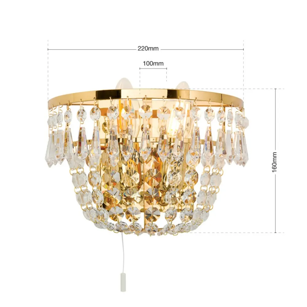 Alt stråler og glitrer når man ser op mod denne væglampe. Utallige krystaller pryder lampen og skaber denne imponerende helhed. Denne lampe skaber øjeblikke som er mere fortryllende end i eventyrene. Den klassiske væglampe får mange forskellige slags indretninger til at stråle. Lyskilden skjuler sig bag de mange krystaller. Når lyset baner sig vej ud igennem de slebne glassten, opstår der helt fortryllende lyseffekter.