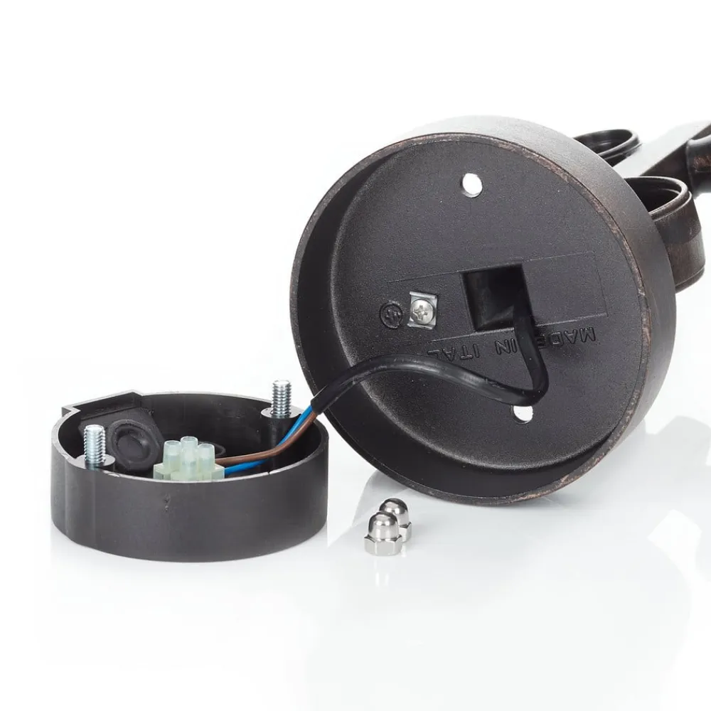 MARIELLAs skærm er rettet opad, og sørger for at denne udendørs væglampe har en charmerende og nostalgisk udstråling. Lampen ligner en klassisk lygte med en sort og kobberfarvet overflade, og skaber en god atmosfære rundt om huset.