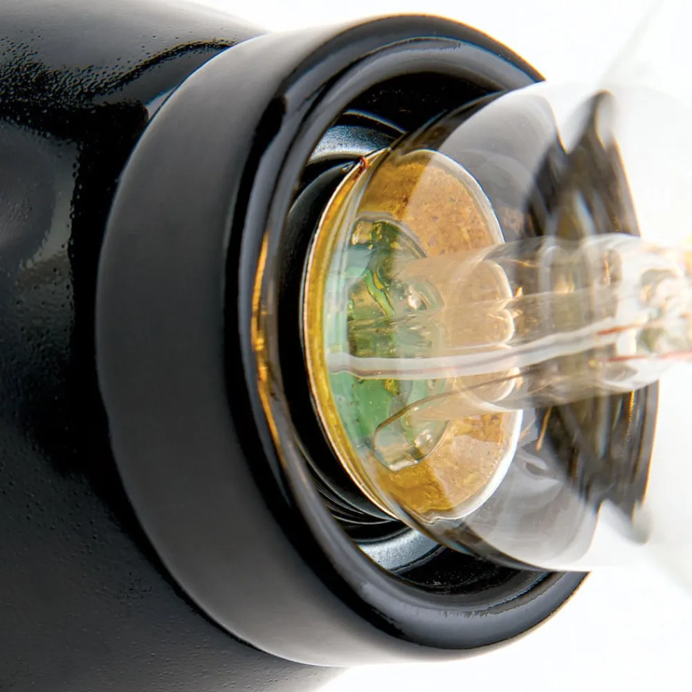 Frost keramisk fatningslampe – til væg- eller loftsmontering (vinkel: 45°) Frost-væglampen er et lille, men desto mere effektivt belysningstilbehør til interiør i retrostil. Den består ganske enkelt af et vægbeslag af glaseret keramik, hvori der er indbygget en E27-fatning. Der kan bruges lyskilder (herunder LED) med en maksimal effekt på 60 watt. Det ser bedst ud, når der bruges retrofit-lamper i et rustikt design, som vist på billedet. Lyskilden er ikke inkluderet i leveringen. Egnede lamper fås som tilbehør – eksternt dæmpbar