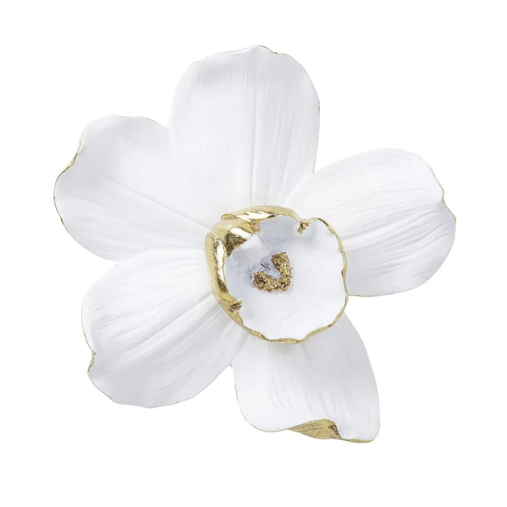 Orchid vægobjekt – en elegant orkidéblomst i hvid, håndlavet Uanset om det er i soveværelset, stuen eller gangen: Med sin yndefulde blomst i et luksuriøst XL-format skaber dette Orchid-vægobjekt stemning i ethvert hjem. Orkideen symboliserer kærlighed, skønhed og ungdom. Det elegante design af vægdekorationen i hvid understreges yderligere af gyldne detaljer. Orkideen tilføjer en stilfuld, feminin accent til romantiske og klassisk indrettede rum.