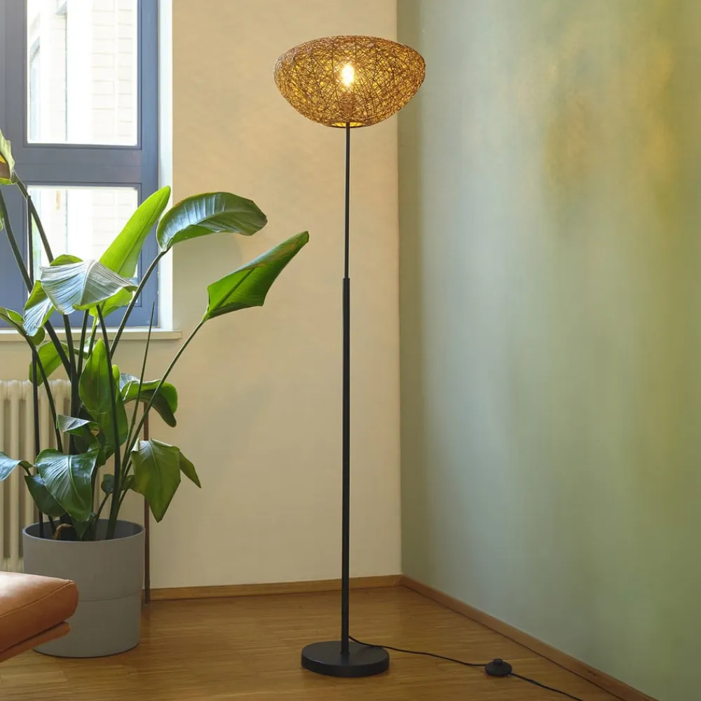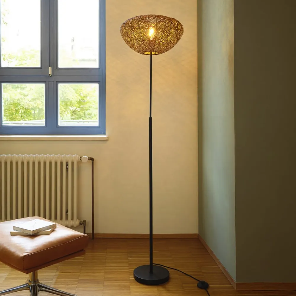 Decor Paper Drop er en gulvlampe, der forener naturlig charme med interessante lyseffekter. Skærmen ligner en dråbe i sin form og består af mange fine papirstrimler, der er viklet omkring en stålkonstruktion. Den troner på et enkelt stativ af sort stål. Gulvlampen i en mørk beige farve passer ind i ethvert interiør og skaber en behagelig atmosfære i rummet med det udstrålende lys.