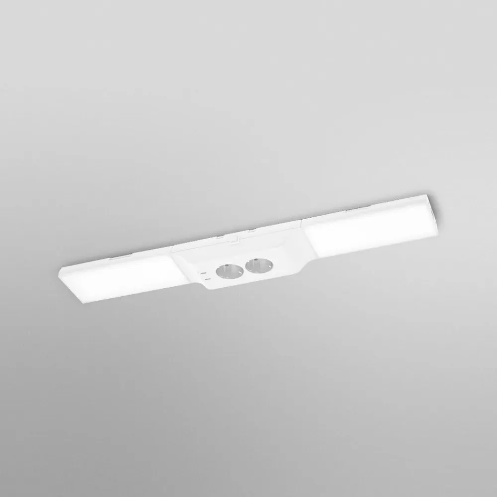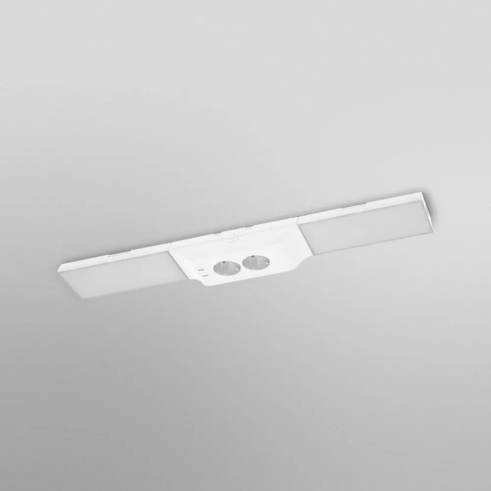 Det rammeløse underskabsbelysningspanel er ikke kun en lyskilde, men tilbyder også tilslutningsmuligheder for apparater og opladningsmuligheder for mobiltelefoner osv. takket være to stikkontakter (EU max. 10 A) og 2 USB-porte (5 V 2,4 A). Stikkontaktmodulet kan i alt forsyne enheder med en effekt på op til 2400 W. Lampen tændes og slukkes ved at trykke på knappen og holde den nede i 1 sekund. Trinløs dæmpning er mulig ved at trykke på knappen og holde den nede i mere end 3 sekunder. Lampen kan suppleres med yderligere lysmoduler, der kan placeres individuelt til højre eller venstre (maks. 4 stk.) og kan forbindes med hinanden takket være et simpelt kliksystem. Leveringen inkluderer komplet monterings- og tilslutningsudstyr.