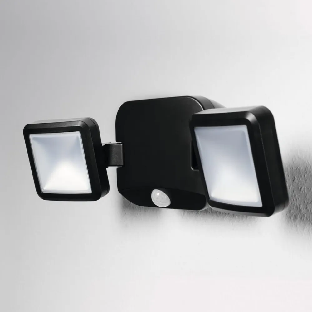 OSRAM Væglampe Med Sensor|Udendørs Spot>LED-udendørs vægspot DOUBLE, sort 2 lyskilder, batteri