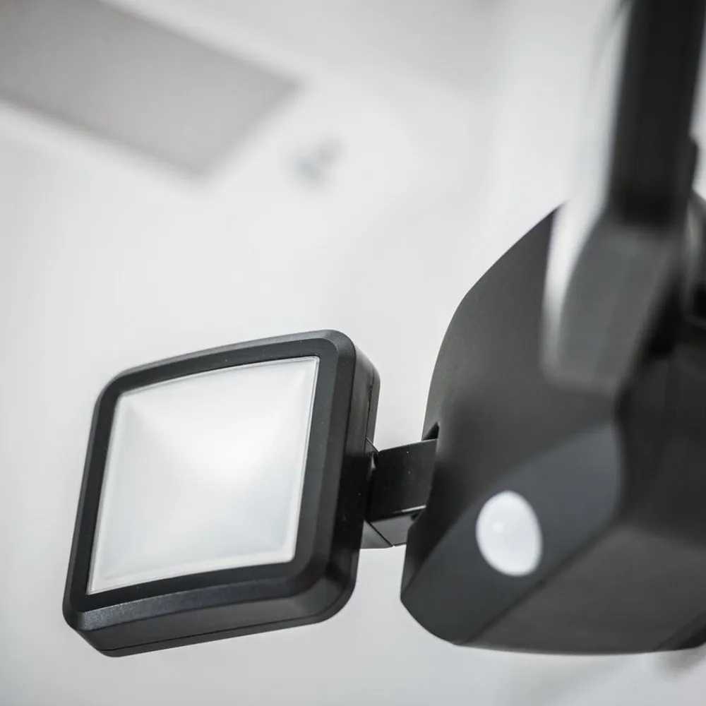 2 lyskilder udendørs LED-spot DOUBLE med sensorstyring og batteridrift Kapslingsgrad: IP54. Produktfordele: Behovsbaseret belysning og energibesparelse ved hjælp af bevægelses- og dagslyssensor. Uafhængig af strømnettet takket være batteriteknologi. Energieffektiv takket være LED-teknologi. Anvendelsesområder: Udendørsarealer. Områder, hvor der ikke er strømforsyning til rådighed. Teknisk udstyr: Inkl. monteringsskruer og dybler.