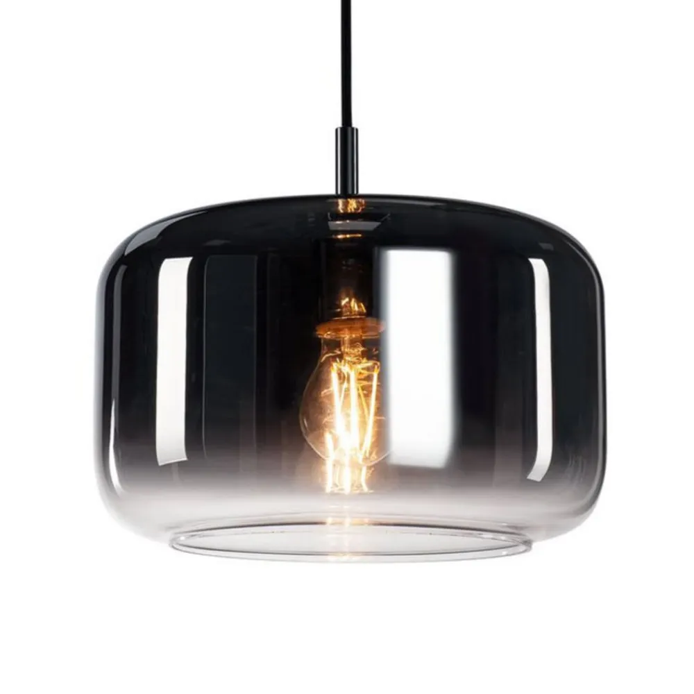 Den elegante, tidløst smukke Pantilo pendel har en bred, afrundet cylinderform. Den er udstyret med et mørkt tekstilkabel, der ender i glasskærmen via et metallisk element. Den blanke skærm er tonet øverst og smelter sammen i et klart område i bunden. Dette flydende kursus giver Pantilo sit karakteristiske udseende, som også bruges i lysfordelingen. Mens der er blød grundbelysning i det øverste område, kommer lyset uhindret nedad. Uanset om det er i grupper eller individuelt – pendlen er ideel til belysning af borde, borde og borde. På grund af den gennemsigtige glasskærm skal der vælges en glødelampe til at understrege det dekorative aspekt.