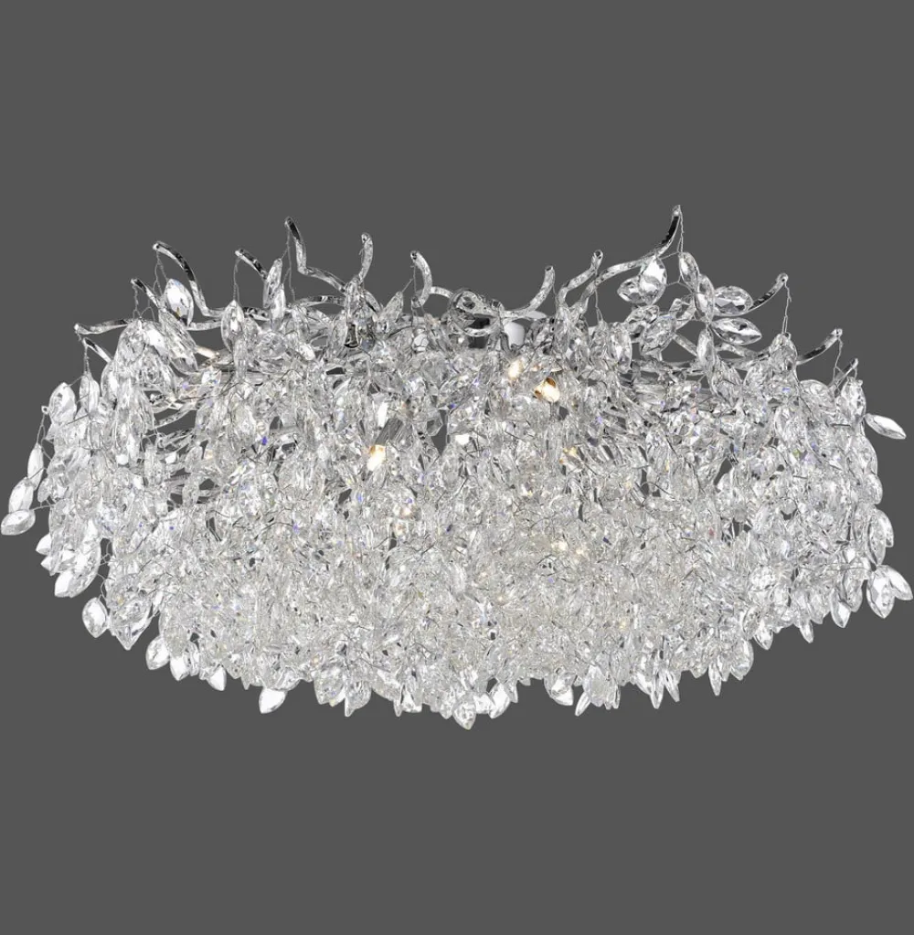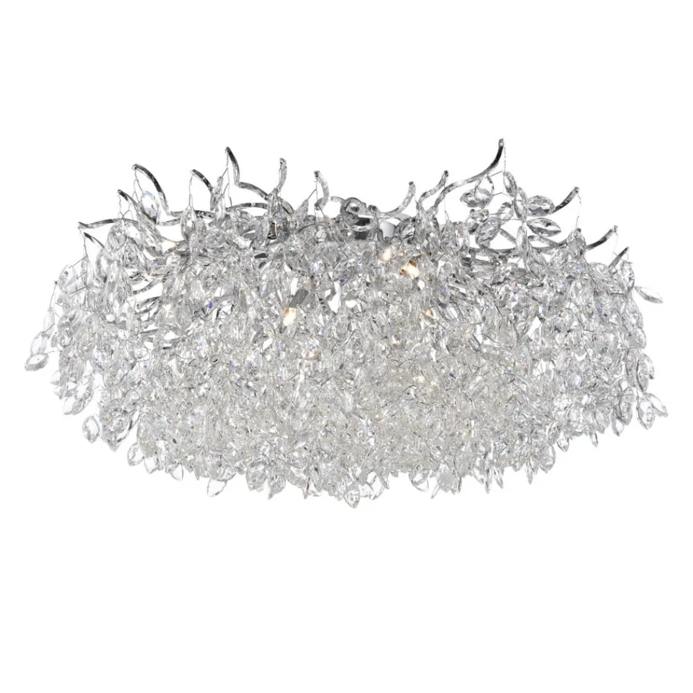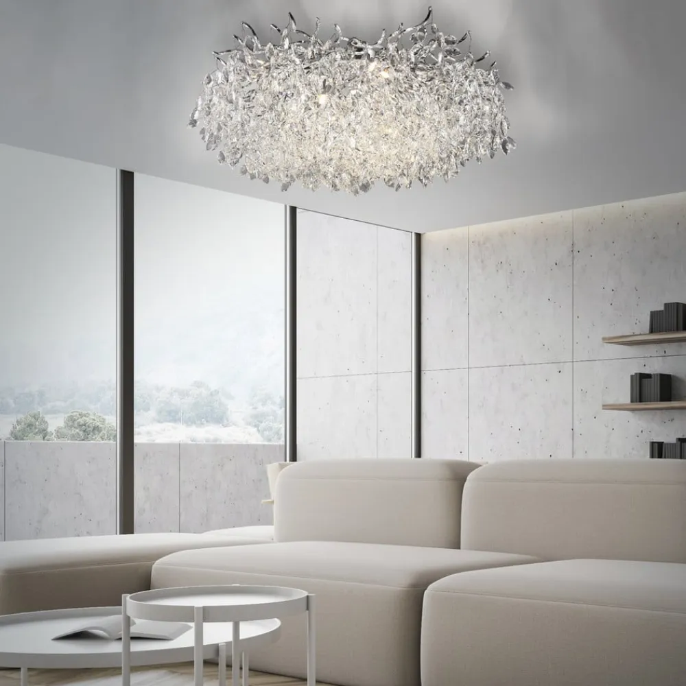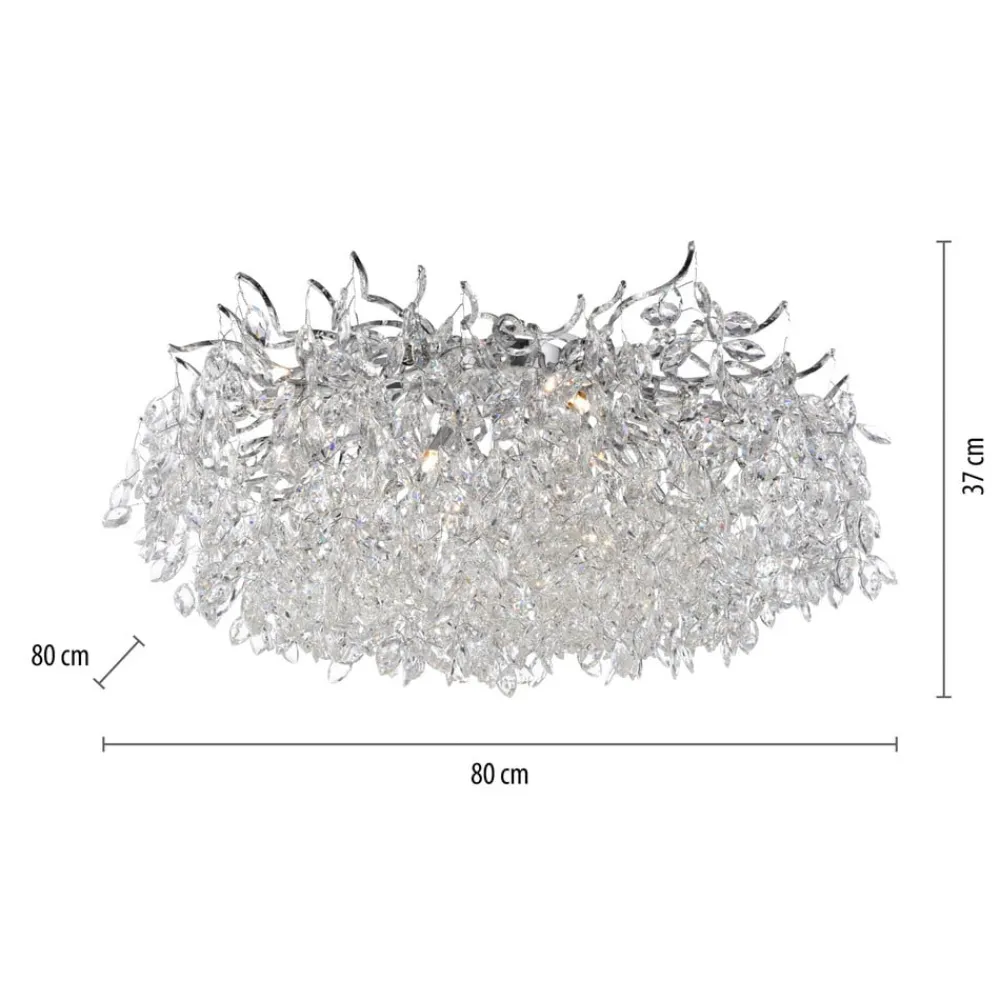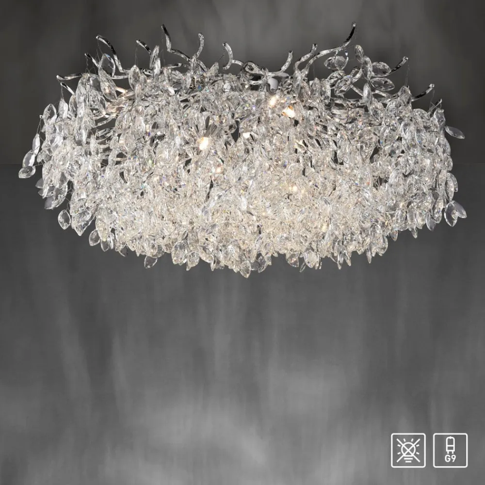 Ricicle loftslampe af forkromet metal med krystalophæng Ricicle loftslampen ser luksuriøs og elegant ud i ethvert rum, uanset om det er stuen, entréen, hotellobbyen, restauranten eller hallen. Det elegante, store armatur af skinnende forkromet metal er udstyret med utallige kæder af funklende krystalvedhæng og skaber et betagende lysspil, som vil fortrylle ethvert rum. Dens pompøse tilstedeværelse og eksklusive udstråling gør lampen til et elegant blikfang i ethvert rum. Loftslampen er udstyret med G9-fatninger, som kan bruges med både LED-lamper og halogenlamper for at holde trit med de nyeste standarder for energieffektivitet. Pendlerne i glaskrystal reflekterer lyset på en fascinerende måde og skaber en indbydende og blændende atmosfære.