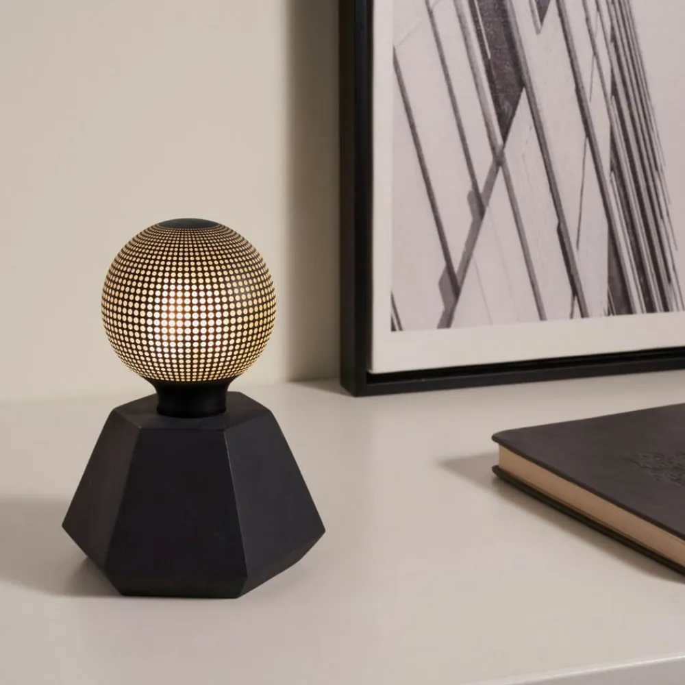 Alt i sort: LED dekorativ bordlampe Black Flare lavet af beton med illuminant