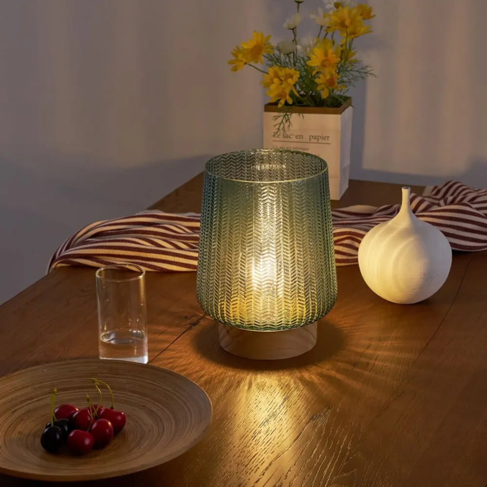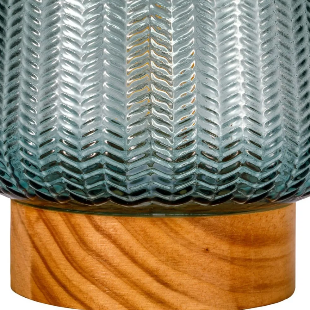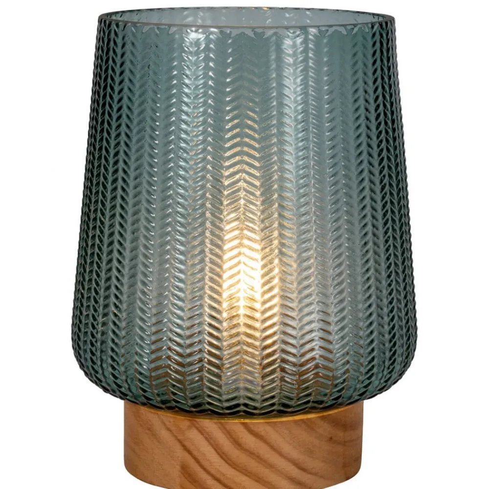 Batteridrevet Pretty Glamour LED-bordlampe med glasskærm Med sit æstetiske glas i turkis giver Pretty Glamour-bordlampen et behageligt lys i stuen eller soveværelset. Glassets stilfulde struktur gør denne bordlampe til et særligt dekorativt højdepunkt. Placeret harmonisk i enhver stue skaber den en fantastisk lysatmosfære. Batteridriften gør, at du kan placere den mobile bordlampe overalt og igen og igen – uanset om der er en strømforbindelse i nærheden. Den 6-timers timer slukker automatisk for bordlampen. Vores tip: På større borde, f.eks. spisebordet, ser flere af disse lamper bedst ud ved siden af hinanden. Bemærk: Bemærk venligst, at batterier ikke medfølger (3 x AA).