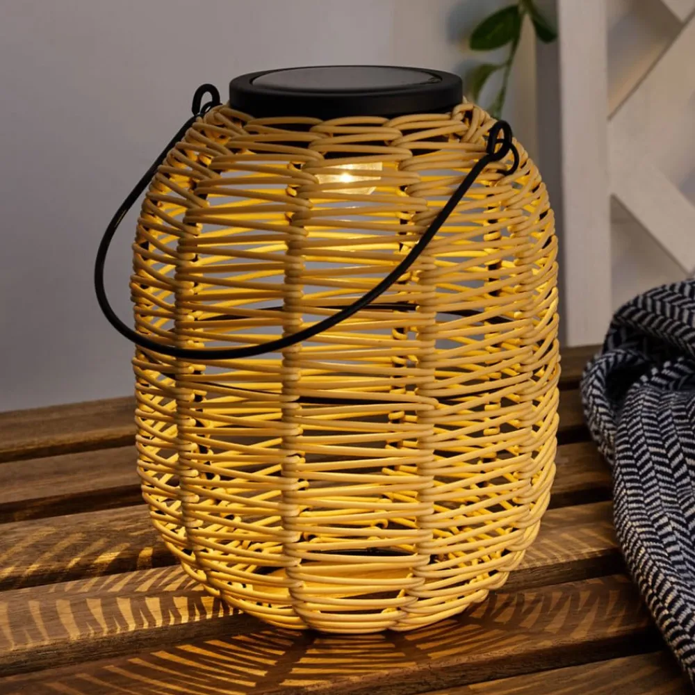 LED solcelle-lanterne Sunshine Treasure i rattan-lookSolcelle-lanternen Sunshine Treasure er designet i rattan-look og bringer vidunderlige lyseffekter til lange sommernætter. Solcelle-lanternen oplader sig selv i løbet af dagen i sollyset. Når mørket falder på, tændes lyset automatisk. Den lysende periode er derefter op til 8 timer om dagen. Det skaber en hyggelig atmosfære i det udendørs område. Sunshine Treasure er lavet af plast i høj kvalitet og er derfor mere modstandsdygtig end lygter lavet af ægte rattan.