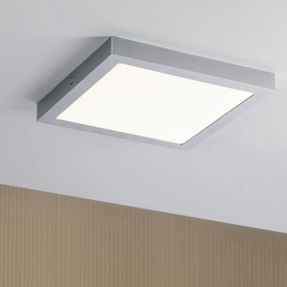 Det firkantede Abia LED-armatur spreder et klart, varmt hvidt lys i hele rummet fra loftet eller væggen. For det stærke lys er kraftige LED’er, som er fast monteret i armaturet, ansvarlige for det klare lys. Den satinerede plastkappe sikrer en jævn og blød spredning af lyset. Armaturhuset er designet i mat krom, hvilket giver det ret enkle armatur et moderne touch.