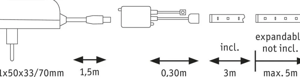Med til leveringen af dette basissæt YourLED medfølger både en netdel såvel som en fjernbetjening. Sættet kan udvides med en længde på 5 meter. Takket være den klæbende bagside og stiksystemet er stribe-systemet let og enkelt at montere på hvælvede overflader. Længden kan på markerede steder (alle 9 LED´er) efter ønske forkortes. Lyset tændes via fjernbetjeningen, de kan dæmpes og lyset kan styres på forskellig vis og et lysscenarium kan programmeres som du vil og/eller du kan indstille flashlight (blinkende lys).