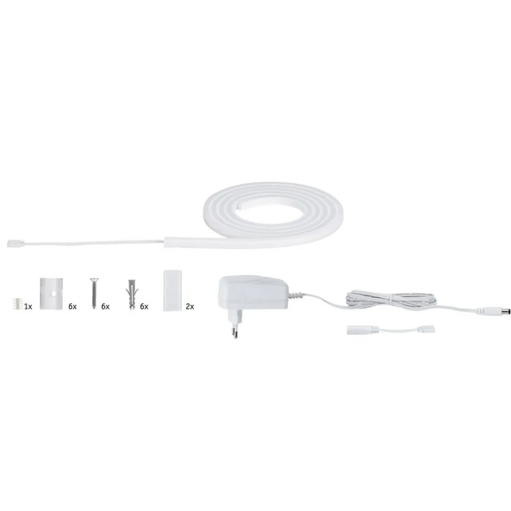 MaxLED Flow basissættet udsender omfattende lys uden synlige LED-punkter. MaxLED Flow er udstyret med en fleksibel profil og indkapslet med en stor strålevinkel. Fastgørelsen er mulig i lige strækninger såvel som i buede linjer. Dette unikke lyselement er forsynet med IP67-beskyttelse, så et effektivt design også er muligt i fugtige rum og wellness-områder. Ud over strimlen og strømforsyningen inkluderer sættet også de næppe synlige, gennemsigtige fastgørelsesclips, skruer og dyvler.
