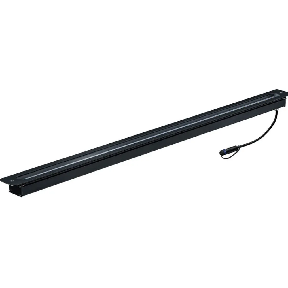 LED-indbygningslampe 93921 Plug & Shine til nedgravning Indbygningslampen 93921 kan bruges i mange forskellige udendørs områder – selv i grønne områder, da den kan køres over med en plæneklipper takket være den planforsænkede ende. Det antracitfarvede hus af trykstøbt aluminium har en lang åbning i toppen, hvorigennem lyset fra de indvendige LED’er udsendes asymmetrisk. Tilstødende facader, planter osv. kan derfor oplyses og fremhæves – Med en driftsspænding på 24 V og vandbeskyttede kabler, tilslutninger og armaturer er Plug & Shine fra Paulmann en alsidig og sikker belysningsløsning til udendørsarealer – Transformator med stik og forlængerledning fås som tilbehør – Kan altid tændes og slukkes via lyskontakt – Der kræves en controller til fjernbetjening (se tilbehør) – Plug & Shine er velegnet til integration i Smart Friends til styring via Smart Friends-appen (til iOS og Android). Der kræves en ZigBee-controller til dette (se tilbehør). Plug & Shine kan også integreres i andre ZigBee-kompatible smart home-systemer (f.eks. til stemmestyring via Amazon Alexa), hvortil der kræves den respektive gateway – maks. kabellængde strømkilde – armatur: 50 m – modstandsdygtig over for poolvand