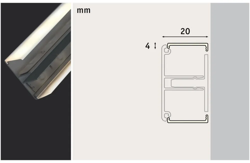 Denne 2 m lange diffuser af satineret plast tjener som afdækning for LED-strips i Duo profilsystemet. Længden kan afkortes individuelt og kan tilpasses til ethvert boligområde.
