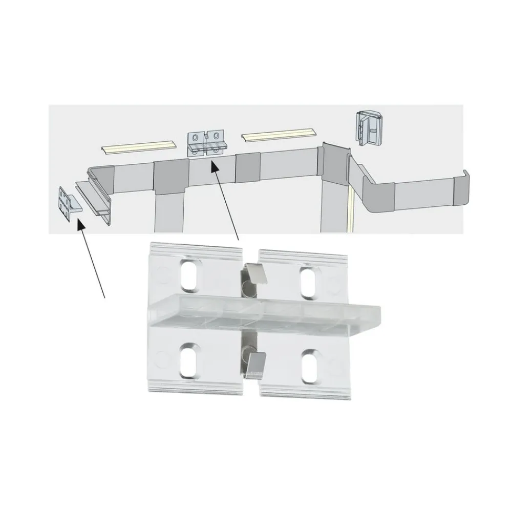 Denne vægholder af kunststof tjener til montage af Duo Profil systemet til LED-strips. Der leveres 4 styk.