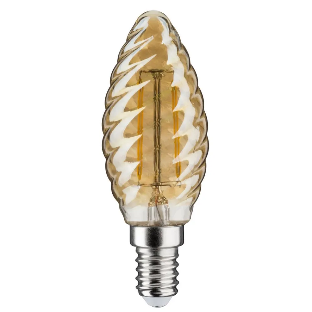 Denne E14 LED-kertepære er en lyskilde, der er udviklet til åbne lamper og dekorative belysningsformål. Den begejstrer med det snoede look på det klare glas med gylden toning og en meget varm lysfarve.
