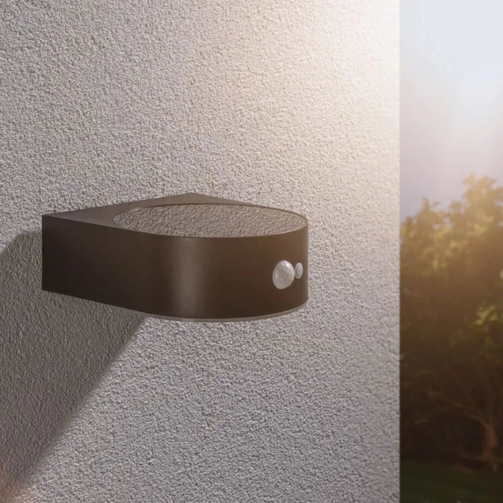 Eileen er en flad udendørs væglampe med en moderne sort finish, der oplyser området nedenunder uden omkostninger. På toppen af armaturet sidder solpanelet, som forsyner armaturet med energi i løbet af dagen og oplader batteriet. Så snart det bliver mørkt, aktiveres lyset automatisk og tændes, når den integrerede bevægelsesdetektor registrerer bevægelse. I solen oplades batteriet i løbet af 6 til 8 timer, og med et fuldt batteri er belysningstiden mellem 8 og 10 timer.