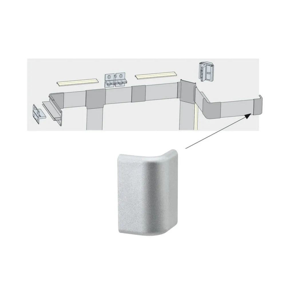 Denne endekappe af kunststof i aluminiumsoptik afdækker skinne og forbindelser på Duo Profil LED-stripsystemet. Der leveres 2 styk.