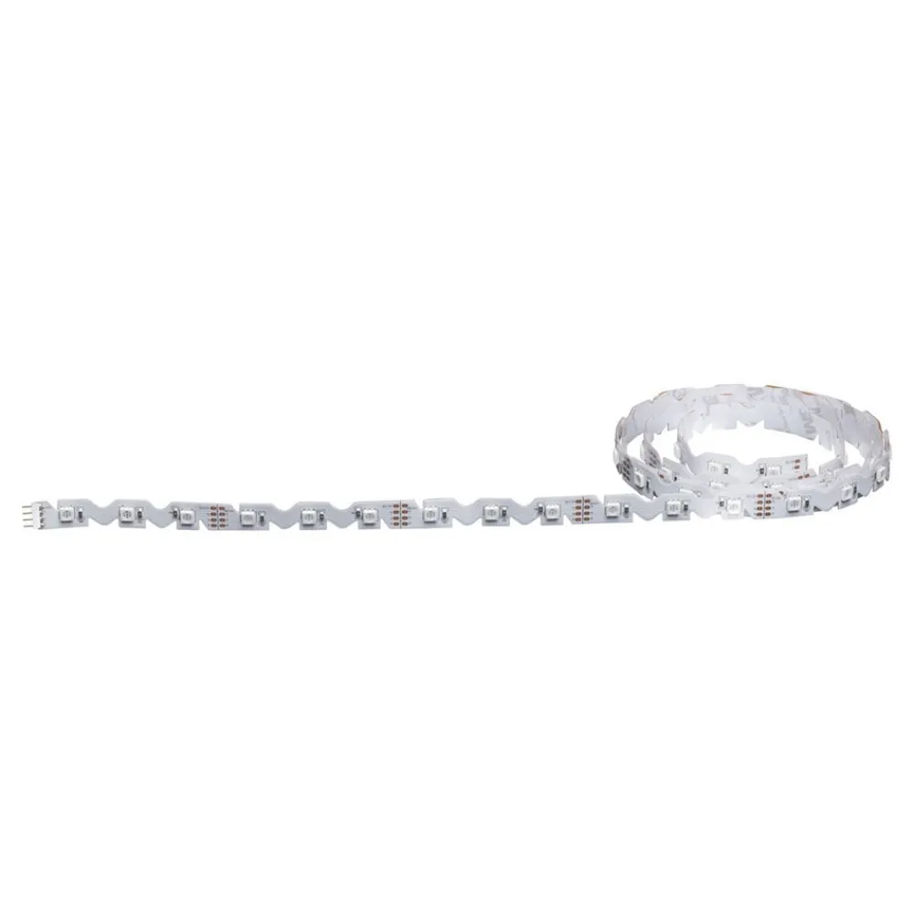 FlexLED 3D-sættet RGB fungerer overbevisende med sine højde grad af fleksibilitet, som opnås med en unik stansning af strippene. Strippene kan dermed trækkes på mange måder, endda om hjørner med en bøjning på mindst 90 grader, samt om tredimensionale kanter og kurver. Desuden sørger LED’erne med RGB-belysning for et stemningsfuldt og unikt lysbillede, der med fjernbetjening kan tændes, dæmpes og styres. Strippene er lette at montere, de strippene klæber på bagsiden. Alt efter behov kan strippene afkortes. Her skal man være opmærksom på de anførte markeringer.