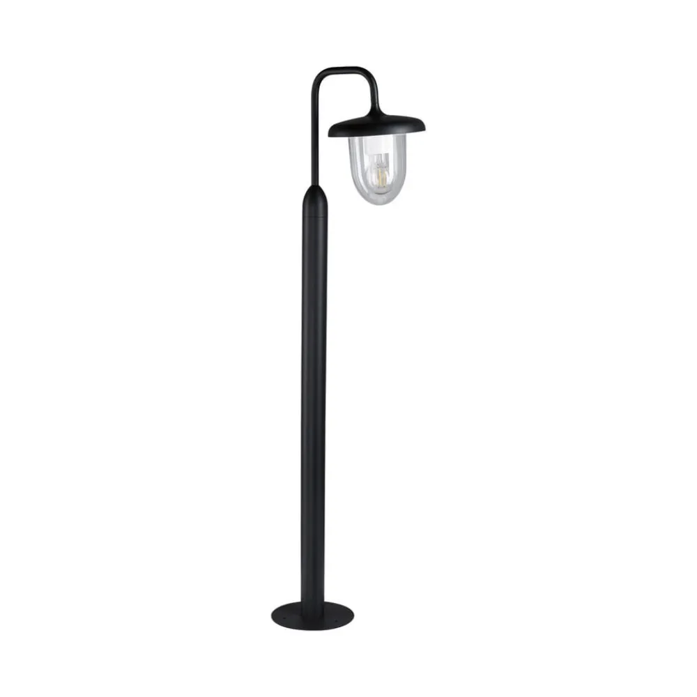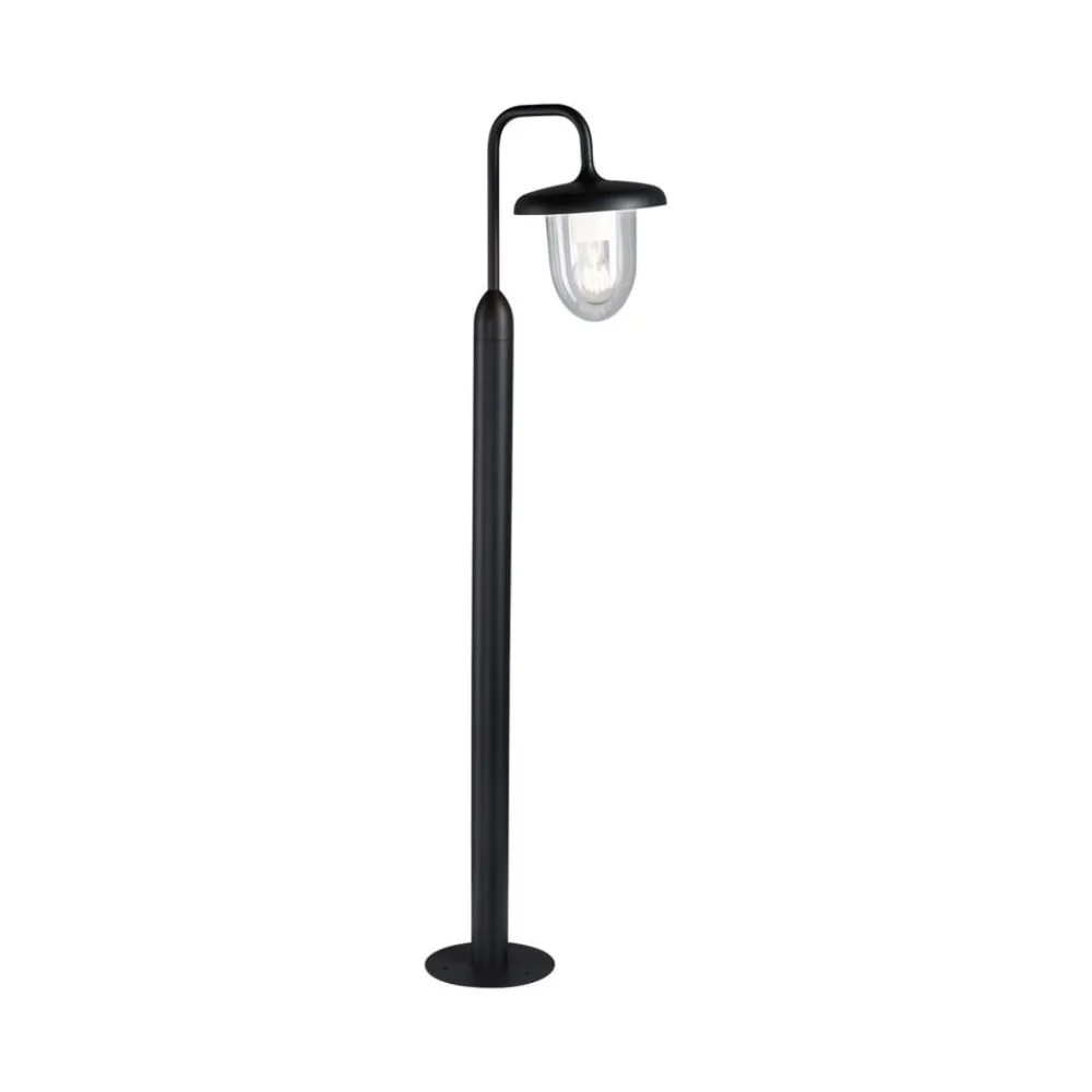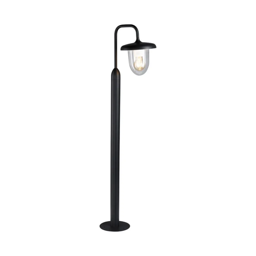 Vintario-stibelysning i retrolook af aluminium og glas Vintario-stibelysningen er lavet af aluminium og glas og har et enkelt design uden dikkedarer med et lidt nostalgisk look. Armaturets mørke, antracitfarvede ramme suppleres af en klar glasskærm, der giver udsyn til lyskilden indeni, og derfor anbefales det at bruge en retrofit LED-lampe med synlige LED-filamenter.
