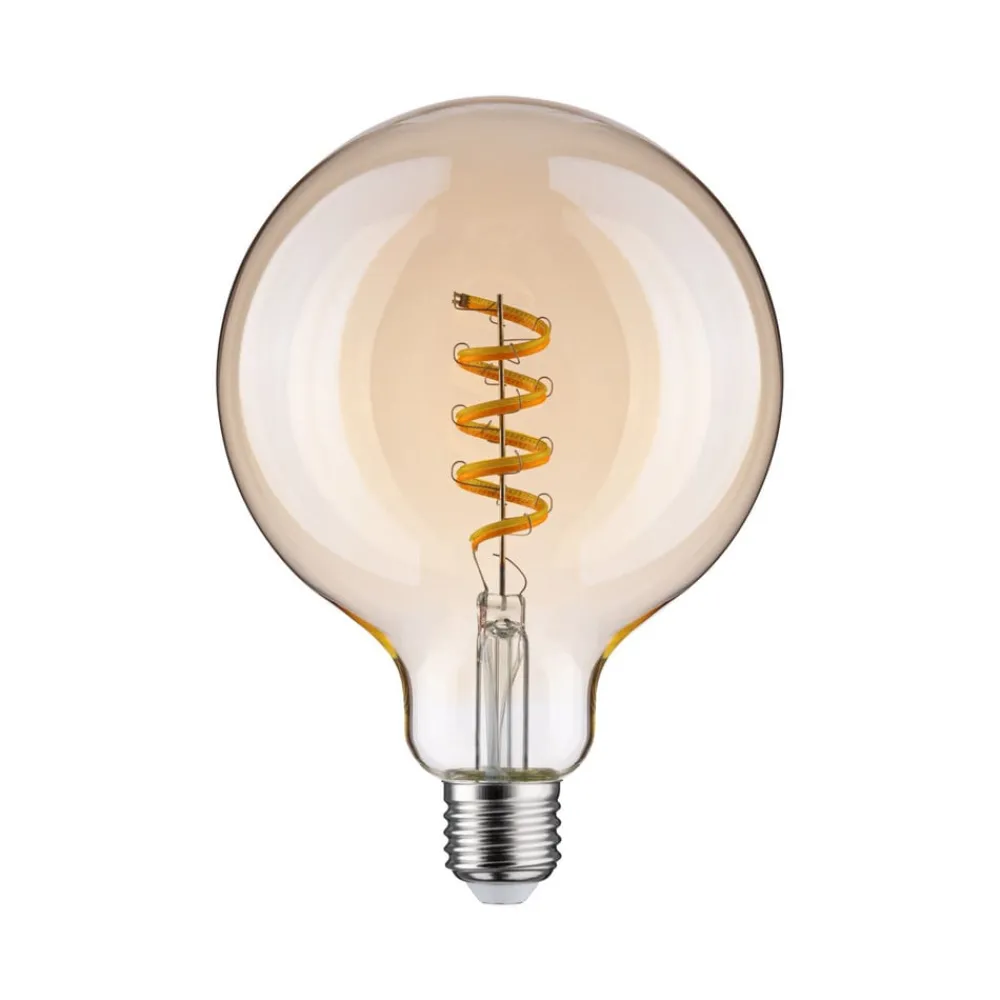 Med CCT-funktion – den gyldne E27 7,5 W LED-kuglelampe fra Paulmann Denne store G125 E27 LED-kuglelampe med Zigbee 3.0 har et smukt glødetrådsdesign og guldfarvet glas, som gør den velegnet til armaturer i åbne planløsninger. Lysfarven kan indstilles mellem varm hvid og dagslys for at skabe den rette stemning til enhver tid. Lyskilden kan også dæmpes, så det er nemt at justere lysstyrken. Lyskilden kan styres individuelt eller som en del af en gruppe ved hjælp af en app eller stemmekommando via en smart home-gateway, der har en Zigbee-grænseflade. Styring uden en gateway er mulig med en fjernbetjening. Lyskilden passer i enhver standard E27-fatning – dæmpbar