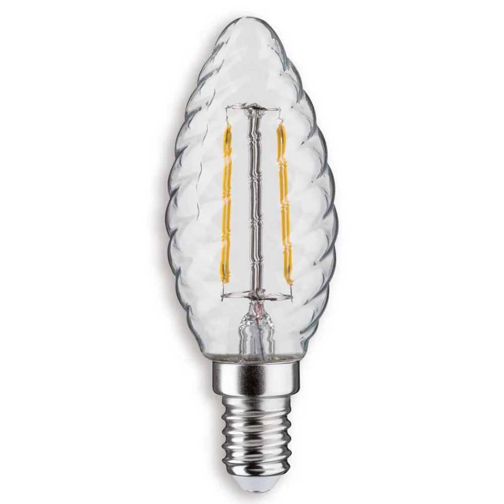 Denne E14-lysestage er beregnet til lysekroner og andre åbne armaturer. Med sin form som et snoet stearinlys og LED-glødetråde er den også særdeles velegnet til dekorative belysningsformål. Takket være moderne LED-teknologi imponerer stearinlyset med en lang brændetid på 15.000 timer og et enormt energibesparende potentiale.