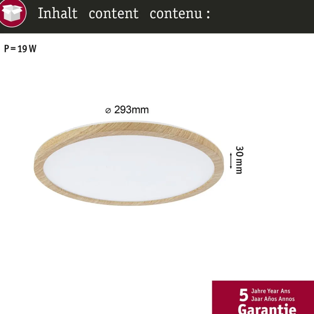 Paulmann LED-loftlampe Atria Shine Ø29cm kombinerer moderne design med en varmhvid lysfarve på 3.000 K. Den integrerede LED-lyskilde sikrer en jævn og behagelig belysning, der er ideel til forskellige boligområder som badeværelse, stue, spisestue, køkken eller entre. Farven i egetræ giver lampen et naturligt og stilfuldt udseende, der passer harmonisk ind i moderne indretningsstilarter.