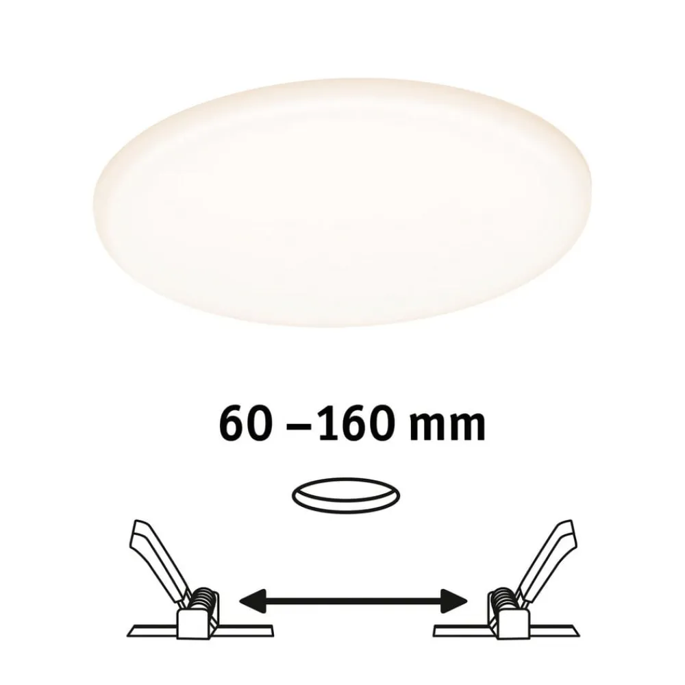 Kan styres med en mobil enhed – Veluna rund LED-indbygningslampe med ZigBee-funktion ZigBee-funktionen åbner op for helt nye muligheder for det flade indbygningspanel: Med den gratis app og Smart Friends Box eller som ekstraudstyr med Paulmanns ZigBee-fjernbetjening (helt uden app) kan styringen af det hvide lys indstilles på tre niveauer. Det giver dig mulighed for at vælge mellem lysfarverne dagslys og universalhvid til koncentreret arbejde og hyggelig varmhvid til afslappende timer i f.eks. sofaen, alt efter dine individuelle præferencer. Praktisk er Veluna også udstyret med IP44-stænkbeskyttelse, som gør det muligt at bruge lyset i fugtige rum som badeværelset eller hobbyrummet – Installationsdiameter variabel takket være glidende fjederclips på bagsiden – Kan monteres som væg- eller loftslampe Tekniske data / kompatibilitet: – Kan styres med den gratis Smart Friends-app (iOS eller Android) via smartphone eller tablet ved hjælp af Paulmann Smart Friends Box eller med Paulmann ZigBee-fjernbetjeningen (se tilbehør) – Kompatibel med følgende systemer: Amazon Alexa Echo Plus, Philips Hue Bridge 2 (undtagen: Hue Entertainment), Osram SMART+ – kan udvides med andre Smart Friends-produkter fra forskellige producenter – kompatibel med ZigBee 3.0