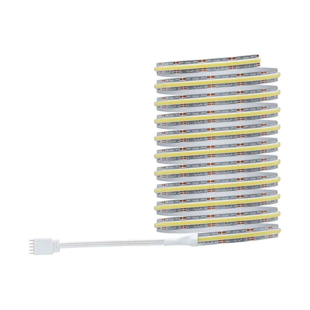 Uanset om det er køkkenbordet, værkstedet eller andre arbejdsflader – MaxLED 1000 Full-Line COB Strips er ideelle som blændfri arbejdsbelysning. MaxLED 1000 komplet sæt med 528 COB LED’er/m skaber et helt ensartet lysbillede uden synlige lyspunkter. Lysforbindelsen muliggør en sømløs sammenkobling og fortsætter det lineære lysbillede uden afbrydelser. Takket være den intelligente hvidlysstyring Tunable White kan lysfarven på strimlerne varieres individuelt – alt fra dagslys til varmhvidt afslappende lys er muligt. Strimlen er med sine 10 mm særligt smal og passer derfor også i meget filigrane LED-profiler. Den brede udstrålingsvinkel på 180° fordeler lyset optimalt uden skygger. Det gennemgående fosforlag beskytter LED’erne mod støv og fugt, og kontaktpunkterne har IP20. Basissættet kan nemt udvides med den passende enkeltstrip. Tunable White tilbyder et trinløst udvalg fra varmhvid til dagslys.