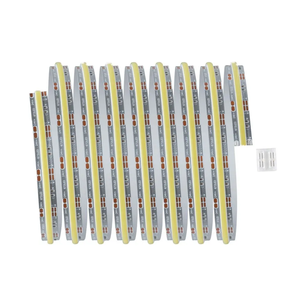 Uanset om det er køkkenbordet, værkstedet eller andre arbejdsflader – MaxLED 1000 Full-Line COB Strips er ideelle som arbejdsbelysning. MaxLED 1000 enkeltstrimmel med 23,5 W, en længde på 2,5 m og 528 COB-LED’er/m skaber et helt homogent lysbillede uden synlige lyspunkter. Enkeltstrimlen fungerer som en udvidelse til MaxLED 1000 COB-basissættet og indeholder ud over striplen også en lysforbinder. Lysforbinderen muliggør en sømløs sammenkobling og fortsætter det lineære lysbillede uden afbrydelser. Takket være den intelligente hvidlysstyring Tunable White kan lysfarven på strip varieres individuelt – alt fra dagslys hvidt arbejdslys til varmhvidt afslappende lys er muligt. Striplen er med sine 10 mm særligt smal og passer derfor også i meget filigrane LED-profiler. Den brede udstrålingsvinkel på 180° fordeler lyset optimalt uden skygger. Det gennemgående fosforlag beskytter LED’erne mod støv og fugt, og kontaktpunkterne har IP20.