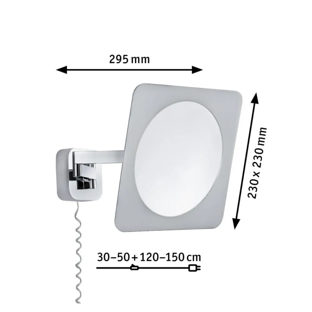 LED-vægspejlet Bela fra Paulmann forener moderne design med funktionel belysning. Kombinationen af højkvalitetsmetal, akryl og en spejlet overflade i krom og hvid giver ethvert badeværelse et elegant præg. Den integrerede LED-lyskilde sikrer en jævn belysning og en behagelig varmhvid lysfarve på 3.000 K, der skaber en afslappet atmosfære.