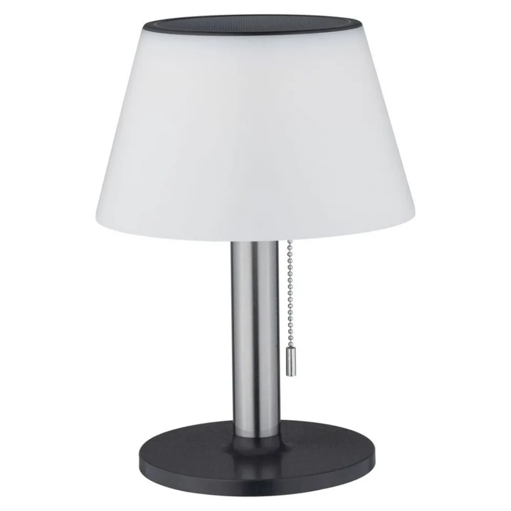 LED-bordlampen Lillesol giver et hyggeligt lys i haven, på terrassen eller på altanen uden eludgifter og uden stikkontakt, fordi lampen er udstyret med et solcellemodul oven på skærmen. I løbet af dagen oplader solcellemodulet det integrerede batteri med sollys. Med et fuldt batteri kan lampen lyse i 3 til 5 timer, afhængigt af lysstyrkeindstillingen. Lysdiodernes lysstyrke kan justeres i tre trin via den trækkontakt, der er fastgjort til lampens ramme, nemlig ved at skifte flere gange (100 %, 50 % og 10 %). Solbordslampen Lillesol er lavet af metal og plastik og er udstyret med hvide LED’er.