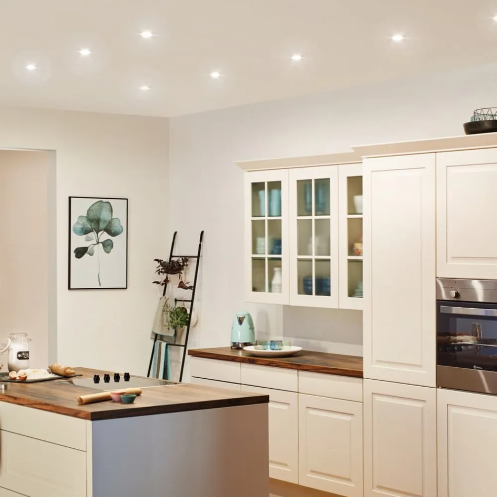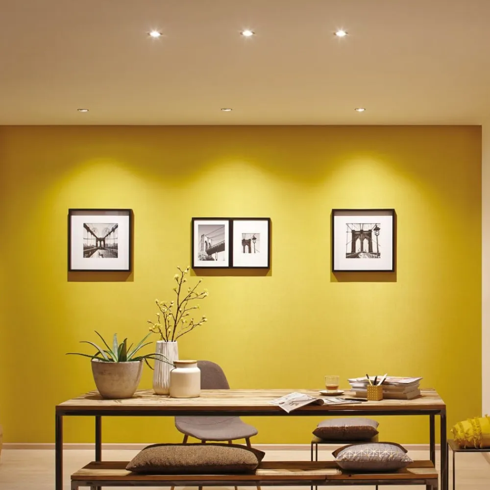 De runde Nova indbygningsspots i mat hvid med GU10-pærer giver varmhvidt lys, harmonisk design og høj energieffektivitet. Det puristiske udseende forstyrres ikke af sprængringe: Da pæren sættes i bagfra, er der ikke behov for sprængringe. Takket være 230 V-direkte tilslutning kan lamperne nemt kobles sammen uden begrænsninger. Den ukomplicerede fastgørelse med holderfjedre sikrer, at loftet forbliver ubeskadiget, selv efter gentagen montering og demontering. Leveringen omfatter effektive og holdbare GU10 LED-pærer, der med deres varmhvide lys skaber en behagelig atmosfære.