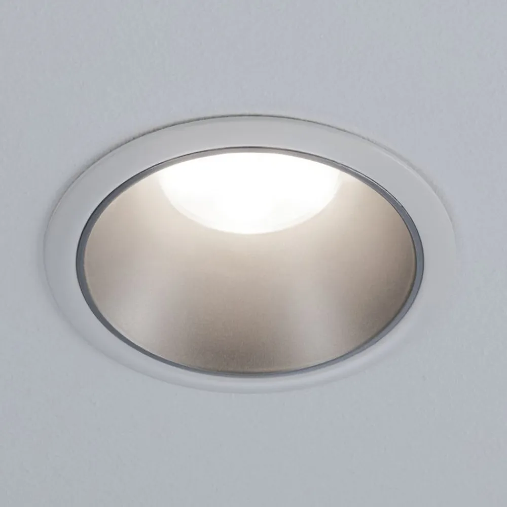 Cole LED-indbygningsspot i klassisk design Cole-indbygningsarmaturet udmærker sig ved, at LED-lyskilden er forsænket dybt ned i loftet. Lyset rammer derfor først den sølvgrå overflade, før det fordeles blødt og blændfrit. Det skaber en udstrålingsvinkel på 110°. Det udsendte lys kan dæmpes i tre trin med en almindelig vægkontakt. Cole indbygningsspot har også en IP44-beskyttelsesgrad og er derfor også velegnet til brug i badeværelser.