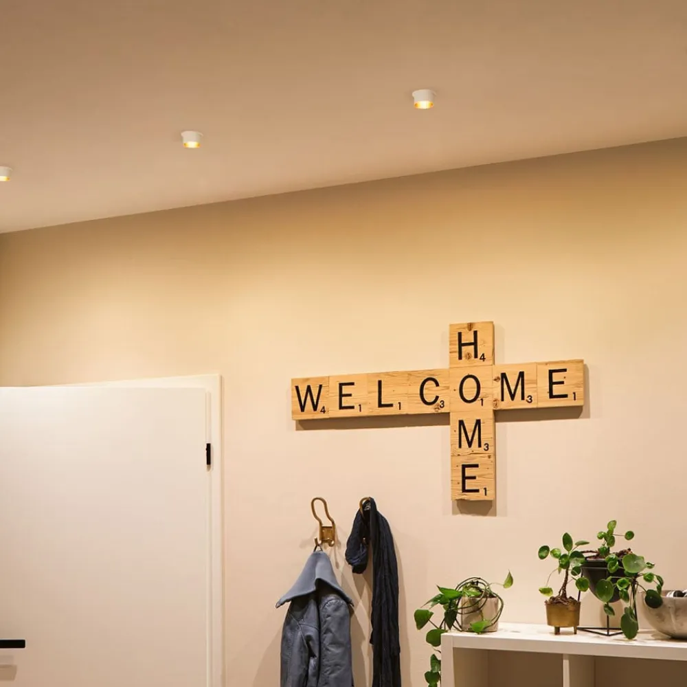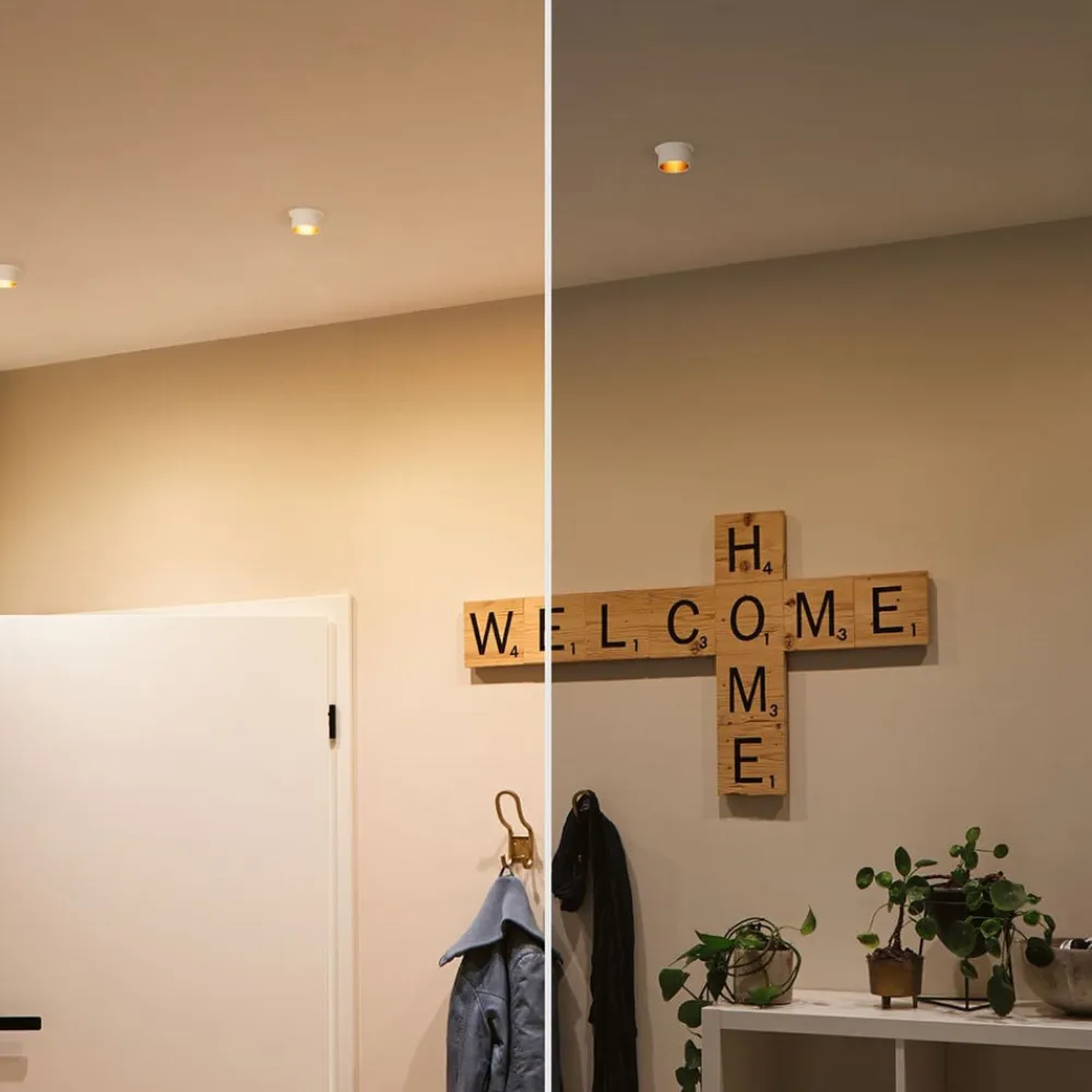 Dæmpbar Gil LED-indbygningslampe med dekorativ cylinder Gil LED-indbygningslampen giver dekorative HighLights i ethvert rum: Den er udstyret med en fremspringende dekorativ cylinder med en lav installationsdybde i forhold til de dybtliggende lyspunkter. LED’erne spotlighter varmhvidt lys for en behagelig atmosfære. Lysstyrken kan nemt justeres i tre trin ved hjælp af den almindelige lyskontakt: 1 x kontakt: 100 %, 2 x kontakt 50 % og 3 x kontakt 25 %. Om nødvendigt kan pæren udskiftes af en specialist. LED-indbygningsspottene kan kobles sammen i det uendelige Indbygningsspottet Gil er beskyttet mod indtrængning af stænkvand med kapslingsgrad IP44 og er derfor også egnet til installation i badeværelser og andre fugtige rum – til direkte tilslutning af 230V