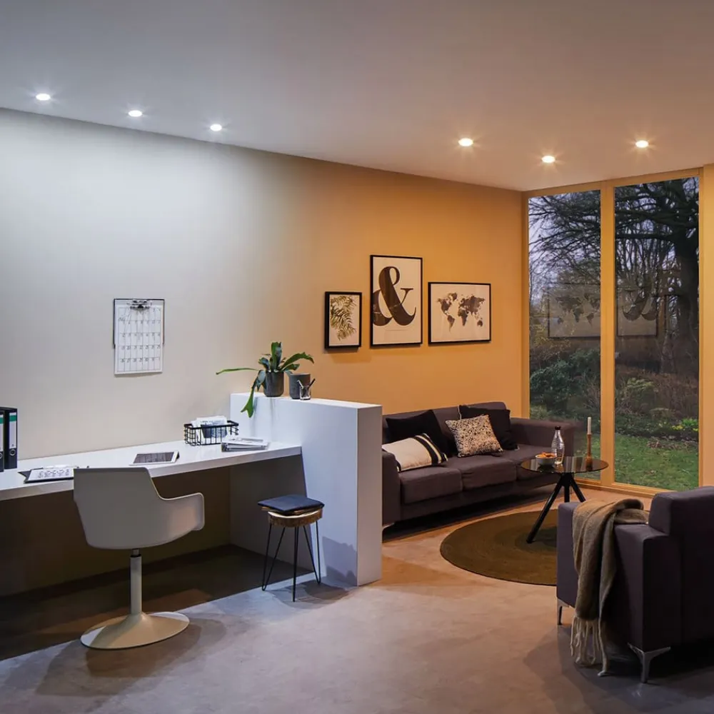 Nova Plus LED-indbygningslampe med intelligent ZigBee-teknologi og Tunable White-funktion Det praktiske 3-delte sæt Nova Plus LED-indbygningslamper giver mulighed for intelligent belysning med innovativ app-styring. De runde spots er praktiske og nemme at installere takket være den direkte 230 V-forbindelse og kan nemt styres med en passende app, stemmeassistent eller fjernbetjening efter integration i et passende smart home-system. Ud over kontinuerlig dæmpning kan lyset også justeres fra varm hvid til dagslys. Justering af lysfarven skaber den rigtige stemning til hvert øjeblik. Tekniske data/kompatibilitet: – kan styres via smartphone eller tablet eller med Philips Hue fjernbetjening (se tilbehør) – Tunable White – varmhvid (2.700 K) – dagslys (6.500 K) – leveringsomfang: 3 stk – mesh-kompatibel – rækkevidden øges fra produkt til produkt – kompatibel med Amazon Alexa Echo Plus, Philips Hue Bridge 2 (undtagen: Hue Entertainment), LEDVANCE SMART+