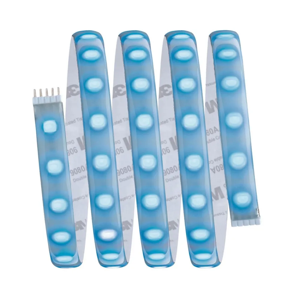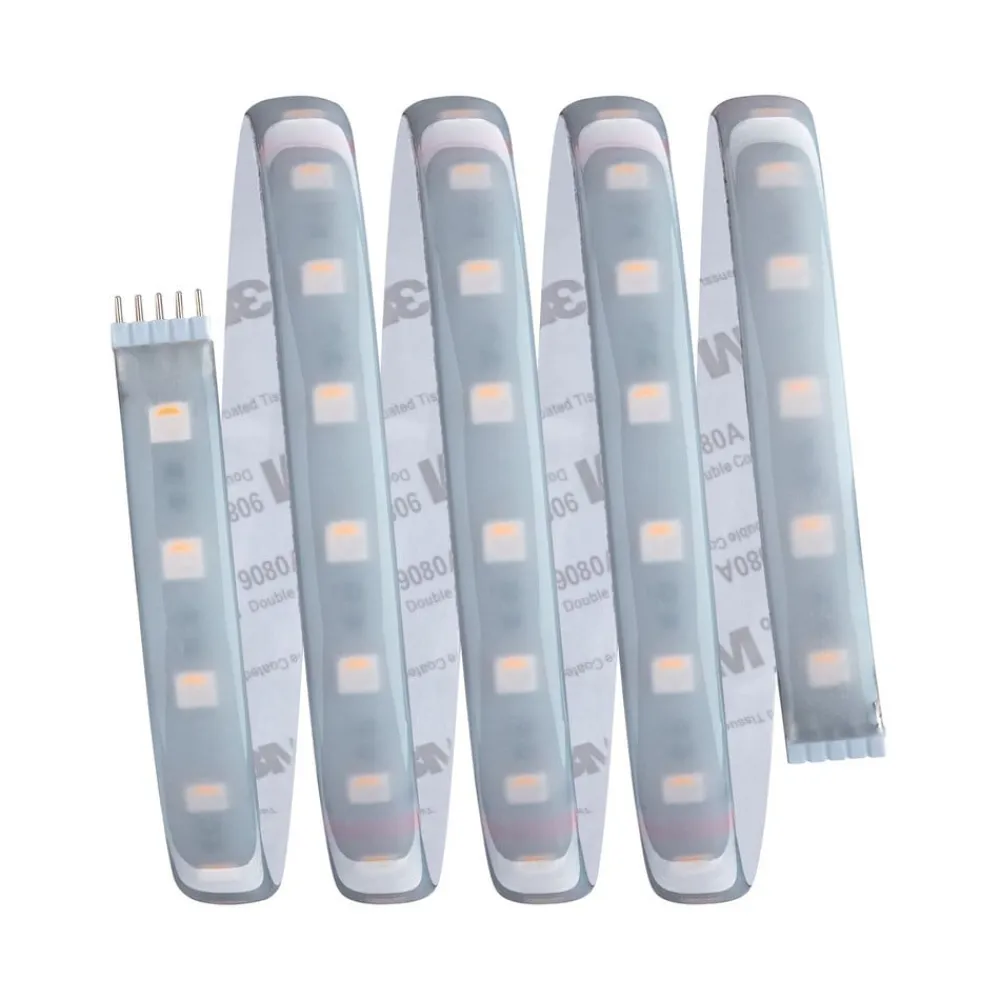 Dette LED-basissæt, med en 150 cm lang LED-strip, kan gennem et simpelt stiksystem, udvides til en samlet maksimal længe på 300 cm. Max LED LED-strippen er udstyret med i alt 18 W LED’er, samt en farveskift funktion. Således kan der anvendes fra et monokrom kontinuerligt lys, til skiftende farveeffekter, i et bredt område. En hvid lysdiode, giver en atmosfærisk varm hvid belysning. Strippen er udstyret med en selvklæbende bagside, hvor der nærmest ingen grænser er for anvendelsesmulighederne. Sammen med en krympeslange er det også muligt at anvende det i vådrum.
