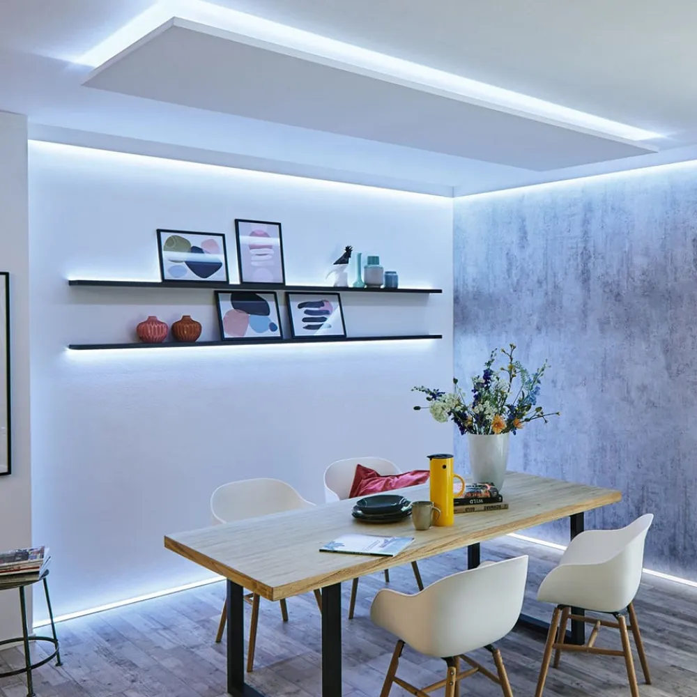 MaxLED 250 Strip extension, Tunable White, velegnet til fugtige rum – 30 LED’er pr. meter – takket være “Protecting Cover”-belægning med stænkbeskyttelse (IP44); kan bruges i badeværelser etc. – hver 16,7 cm / 5 LED’er kan opdeles – til udvidelse af basissættet – nem tilslutning takket være 5-polet tilslutningssystem – med klæbebånd på bagsiden