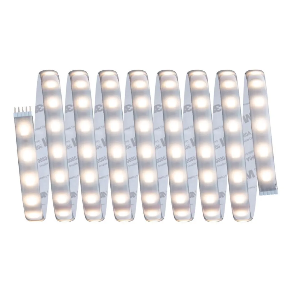 MaxLED LED strip basissættet giver betagende lysscener i hvidt eller farvet lys indendørs og udendørs. Strimlen er selvklæbende og fleksibel, så den kan fastgøres på flade eller buede overflader. Desuden giver stænkvandsbeskyttelsen i henhold til IP44 mulighed for brug i fugtige rum.