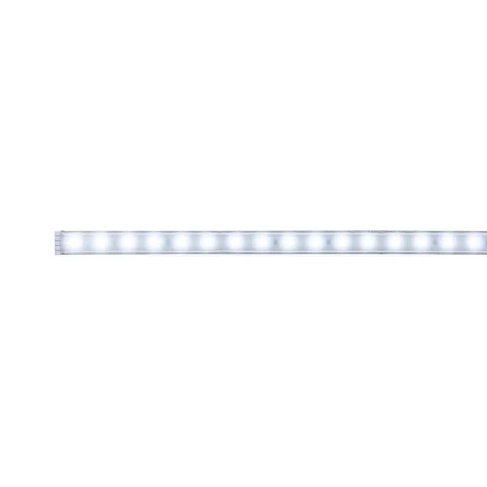 Denne LED-strimmel kan kun bruges sammen med MaxLED 500 basisstrimmel i serien. Den er udstyret med kraftige LED’er, der gør det muligt at bruge strimlen ikke kun som dekorativ belysning, men også som hovedbelysning. Strimlen kan afkortes med 41,5 cm og dermed tilpasses til rumforholdene. Den særlige belægning, der beskytter LED’erne mod støv og vandstænk, gør også striben til en lyskilde, der kan bruges i fugtige rum. Monteringen er en leg for børn takket være den selvklæbende bagside.
