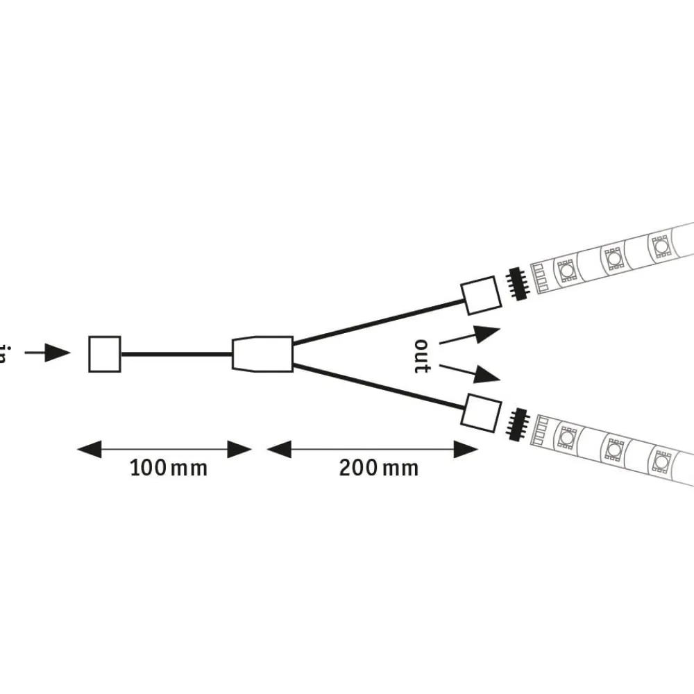 Med denne Y-stikforbindelse kan to MaxLED LED-strips drives med kun én fælles strømforsyning. Ved at anvende to LED-strenge parallelt kan der realiseres en lang række forskellige installationsmetoder eller mønstre.