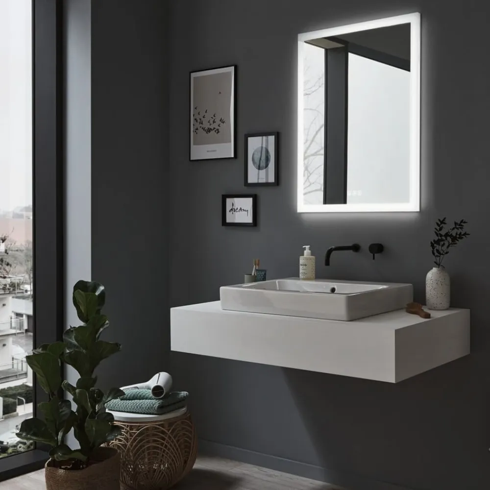 Den integrerede LED-lyskilde tilbyder fleksibel lysfarvestyring fra varmhvid til dagslys, hvilket gør det muligt at skabe forskellige stemninger. Takket være den medfølgende dæmper kan lysstyrken tilpasses individuelt, hvilket gør spejlet til en alsidig belysningsløsning.
